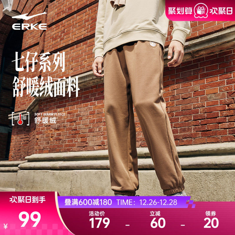 鸿星尔克运动裤男士冬季卫裤加绒男裤男生裤子直筒长裤加厚休闲裤