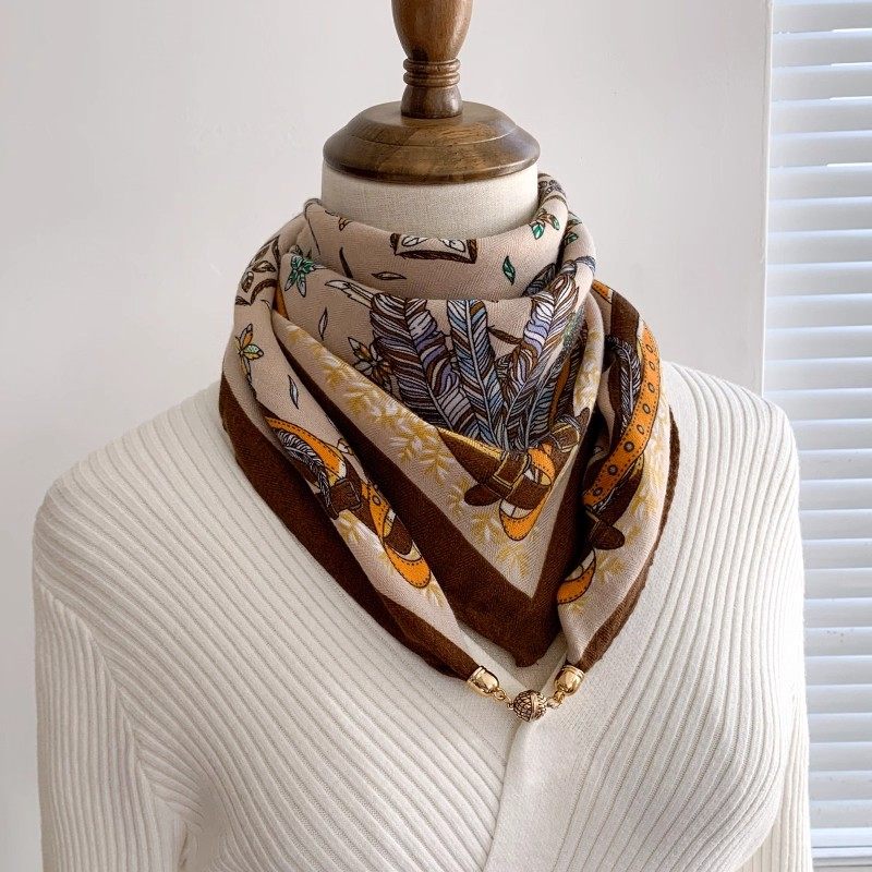 秋冬保暖围脖围巾女2025新款高级感三角巾时尚磁吸扣小方巾丝巾女