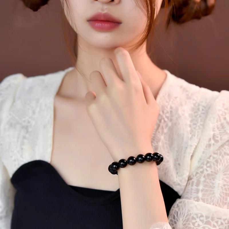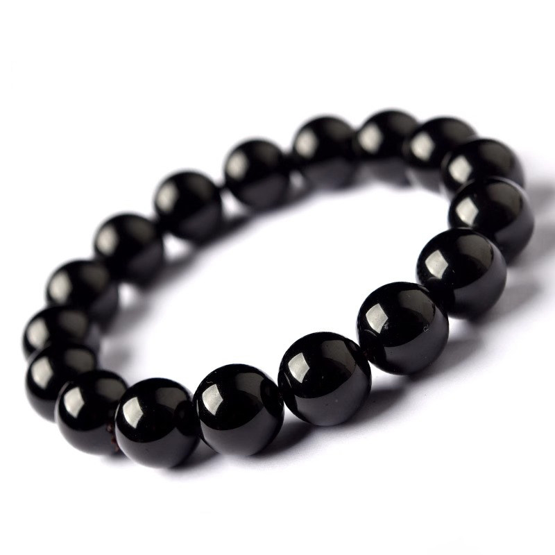 收藏级乌金黑曜石手链天然黑耀石黑色珠子串珠散珠手串男女款佩戴