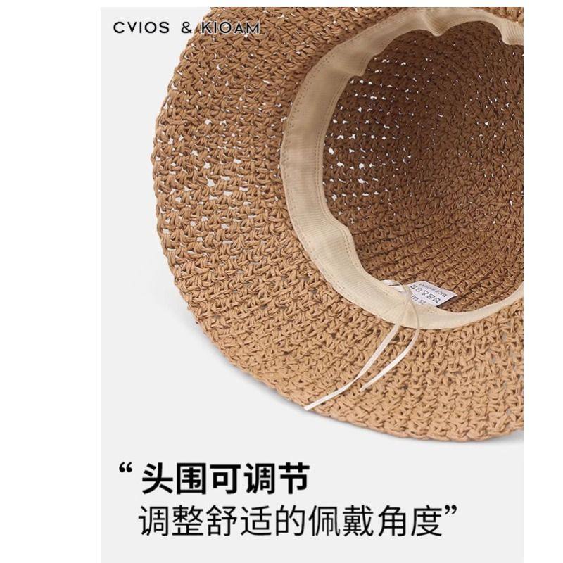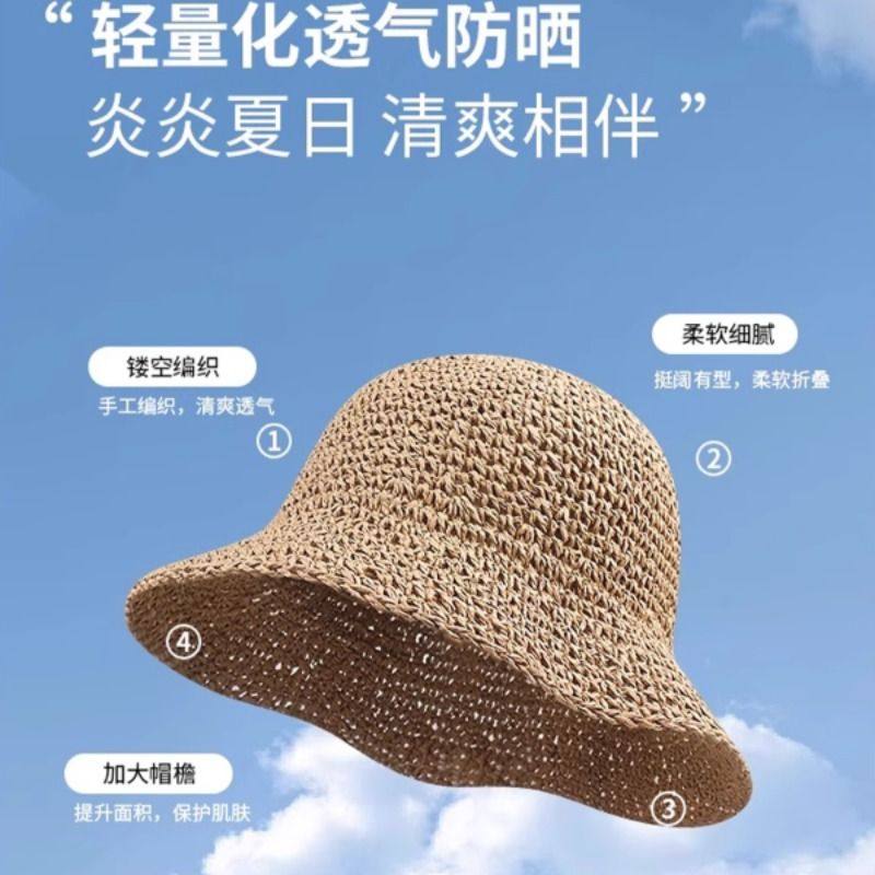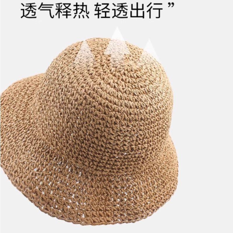 RX UVCUT草帽女镂空透气草编渔夫帽夏季沙滩出游防晒帽男遮阳帽子