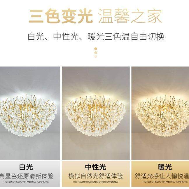 水晶圆形法式树枝卧室大尺寸大灯高档豪华客厅灯吸顶灯2021年新款