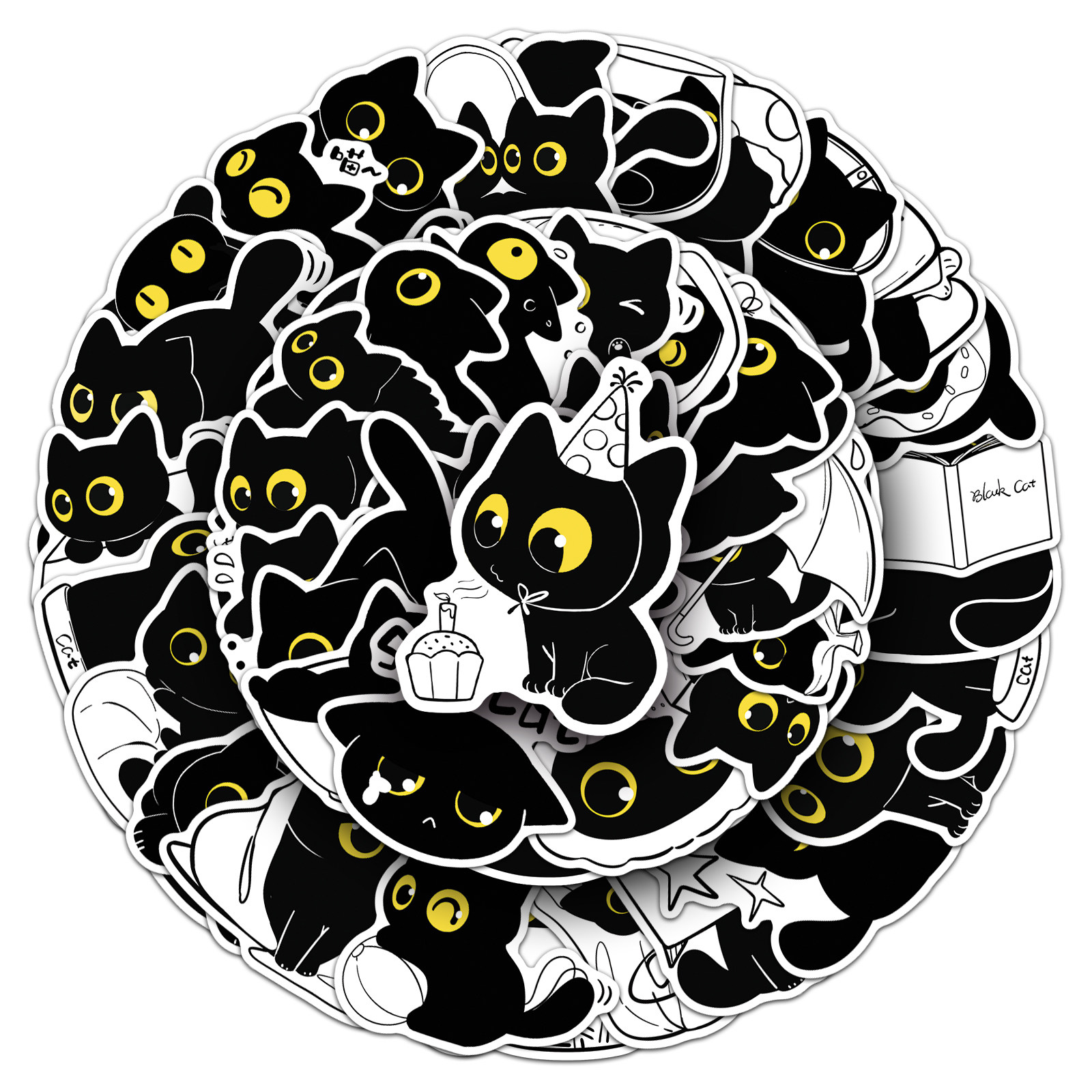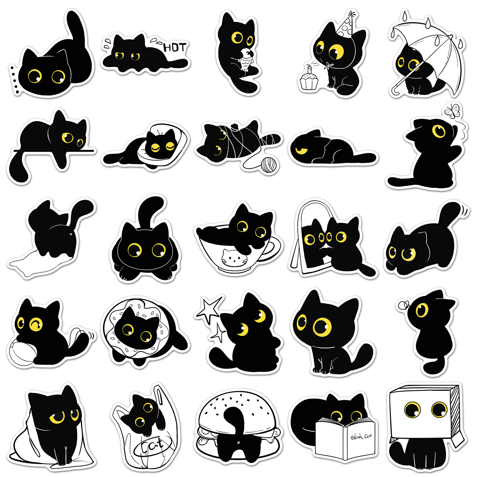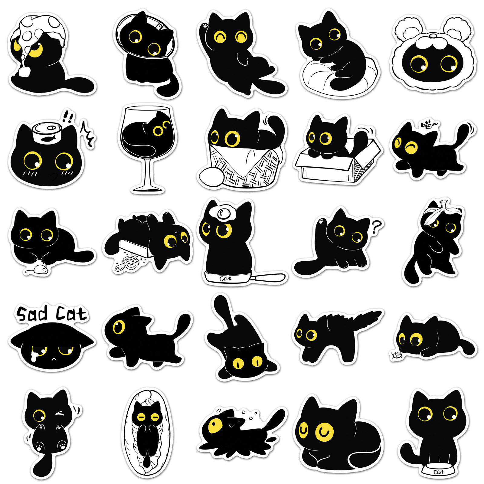 100张可爱小黑猫贴纸卡通猫咪日常趣味防水涂鸦装饰原创不侵权DIY笔记本电脑相册iPad头盔吉他杯子行李箱贴纸
