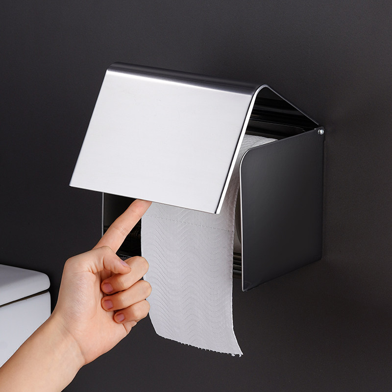 加厚304不锈钢卫生间纸巾盒防水厕纸架免打孔壁挂卷纸架抽纸架