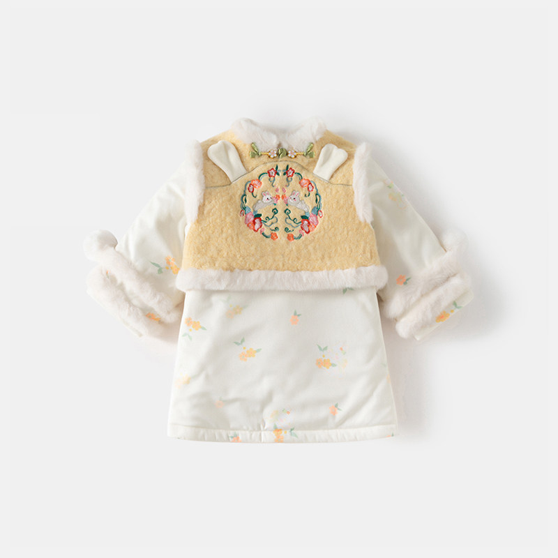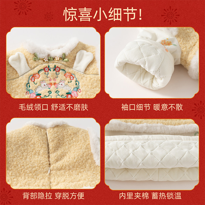 班喜迪女童汉服连衣裙冬装国风夹棉儿童旗袍裙宝宝周岁礼服拜年服