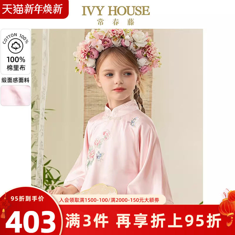 IVY HOUSE常春藤儿童装女童春秋季新款 新中式刺绣国风旗袍连衣裙