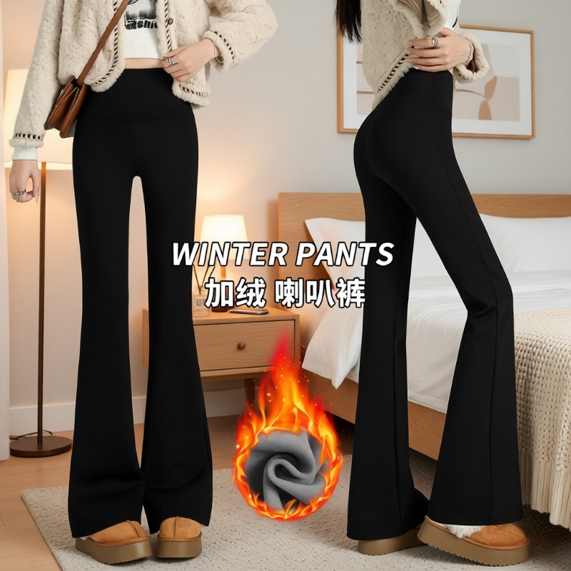 2024年秋冬新款微喇裤黑色加绒收腹提臀喇叭裤高腰显瘦芭比鲨鱼裤