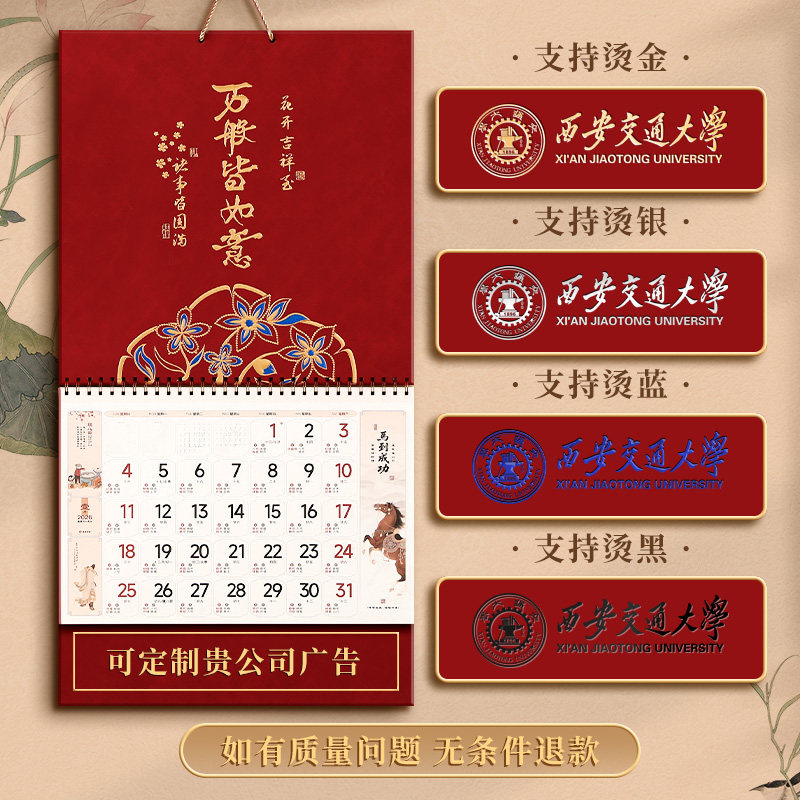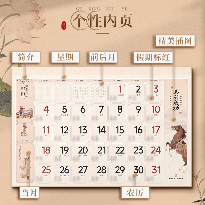 高档挂历2026年定制精美创意家用挂墙日历中国风喜庆挂画挂式月历定做简约大号日历马年挂历公司新年礼品定制
