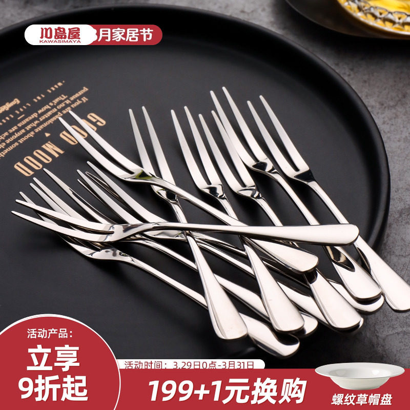 川岛屋不锈钢水果叉家用儿童安全高端甜品叉小叉子餐具水果签套装