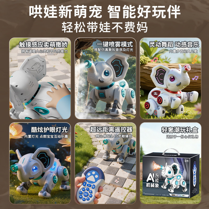 智能机器大象儿童玩具宝宝1一3电动遥控走路小象5机器人6礼物编程