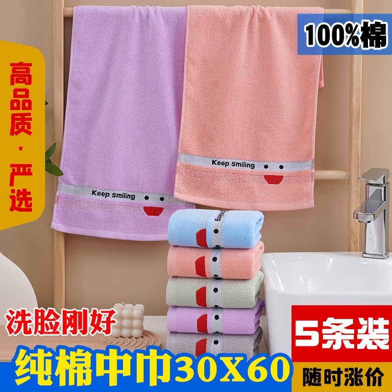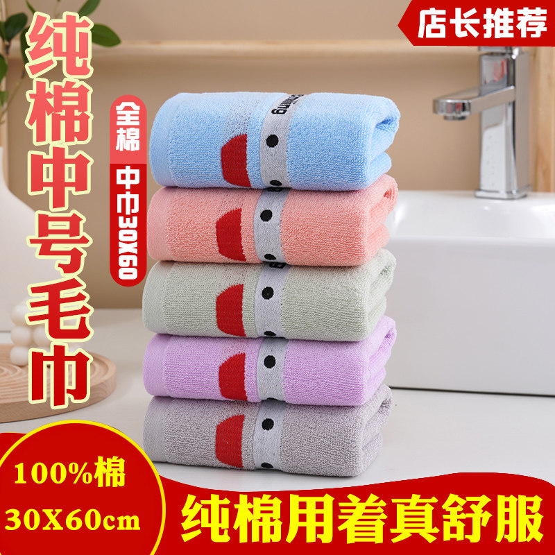 100%纯棉中号毛巾家用洗脸学生少女男士柔软全棉吸水不掉毛30×60