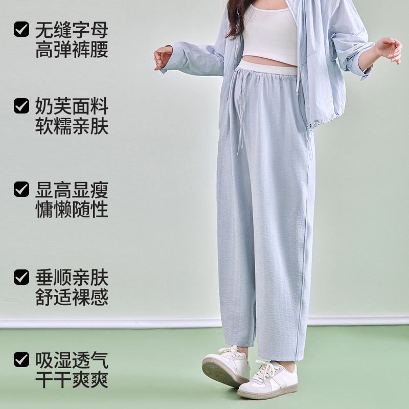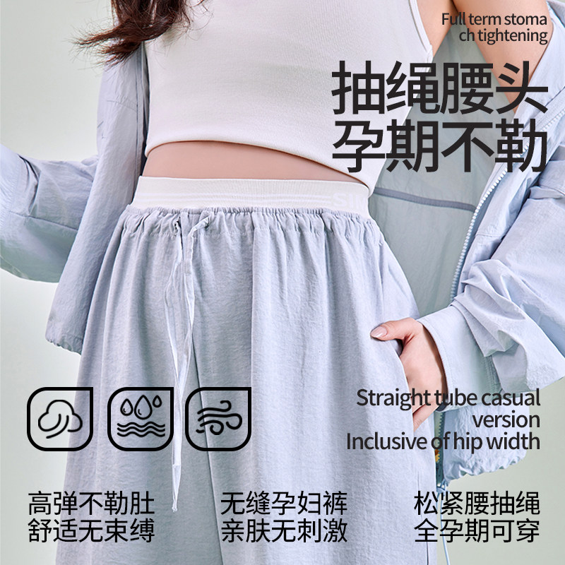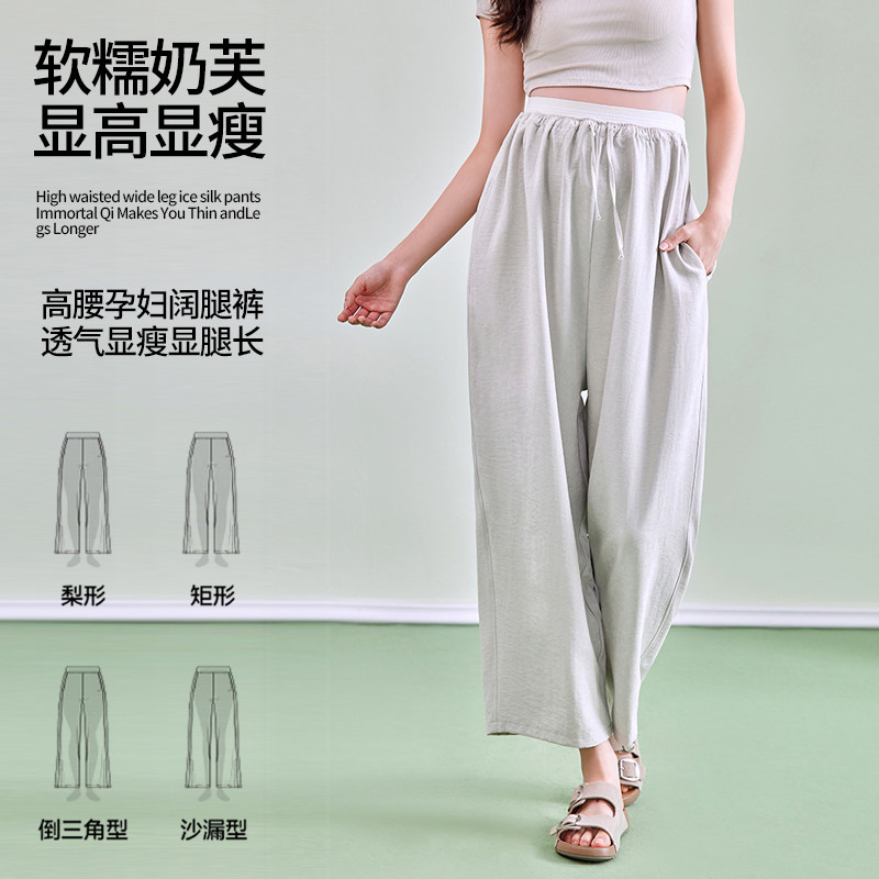 婧麒孕妇裤子春夏不勒肚子奶芙裤外穿薄款无托腹大码阔腿裤孕妇装