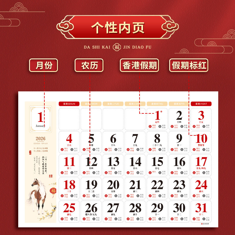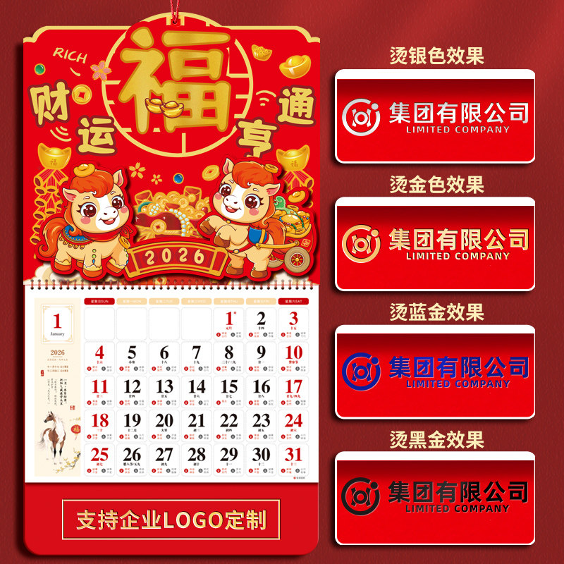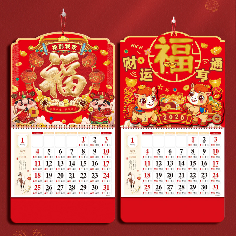 2026年新款挂历马年日历卡通国潮福牌月历高档商务礼品中国风家用挂墙式手撕公司新年送员工企业定制可印logo