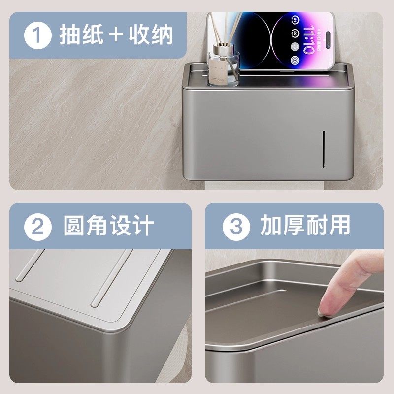卫生间纸巾盒免打孔厕纸盒厕所防水壁挂式抽纸盒卷纸打孔卫生纸架