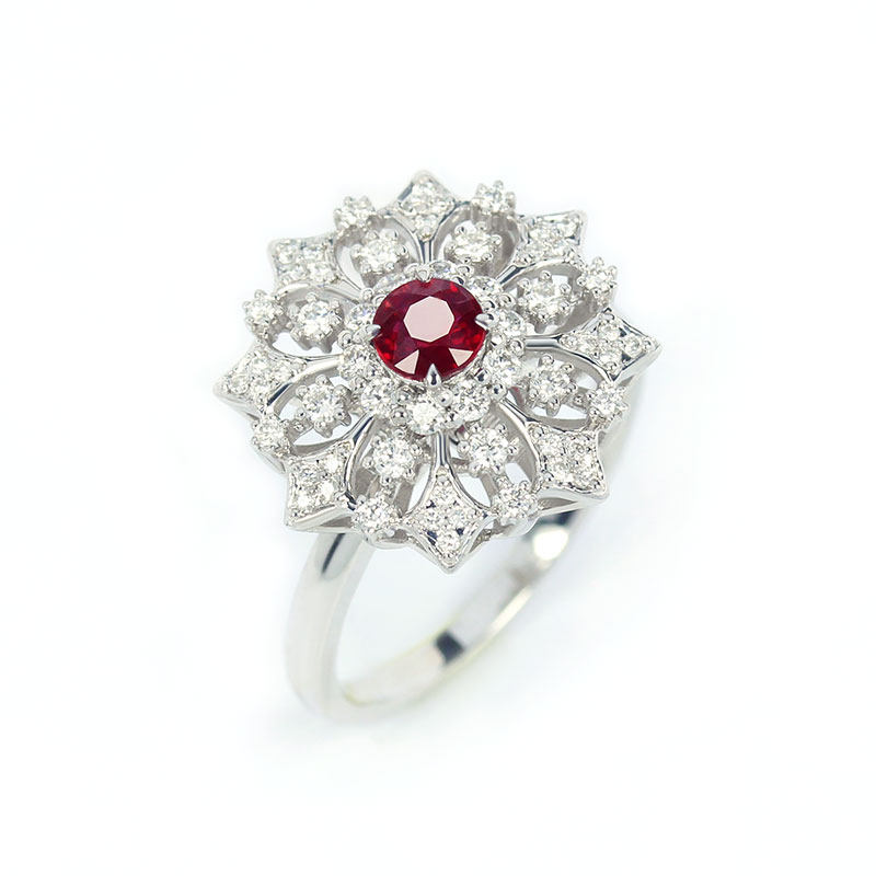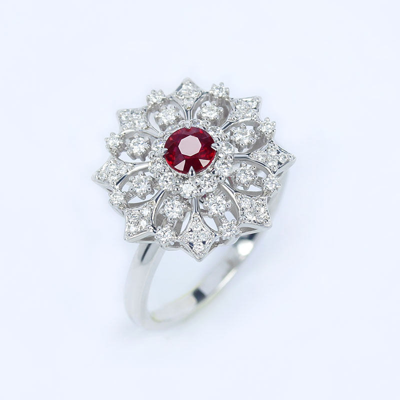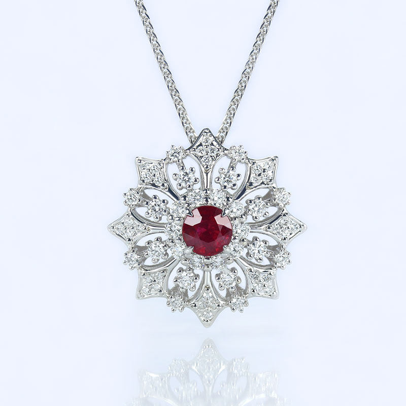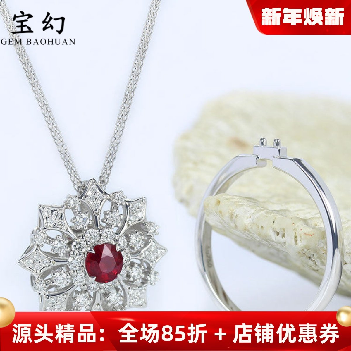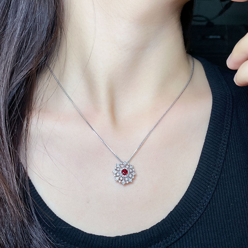 雪花冰晶G18K白金无烧鸽血红宝石圆形两用戒指吊坠 天然项链女款
