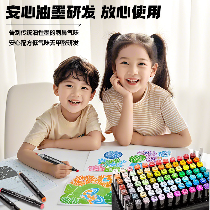 真彩马克笔水彩笔48色小学生美术专用双头油性速干儿童画笔动漫设计手绘画彩色24/36/60/80幼儿园可水洗景观