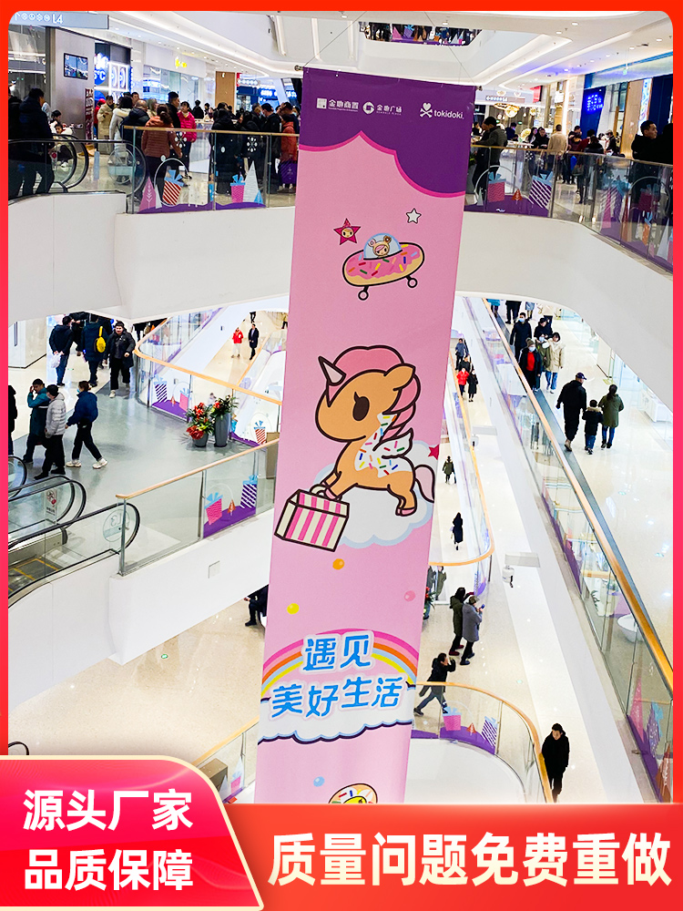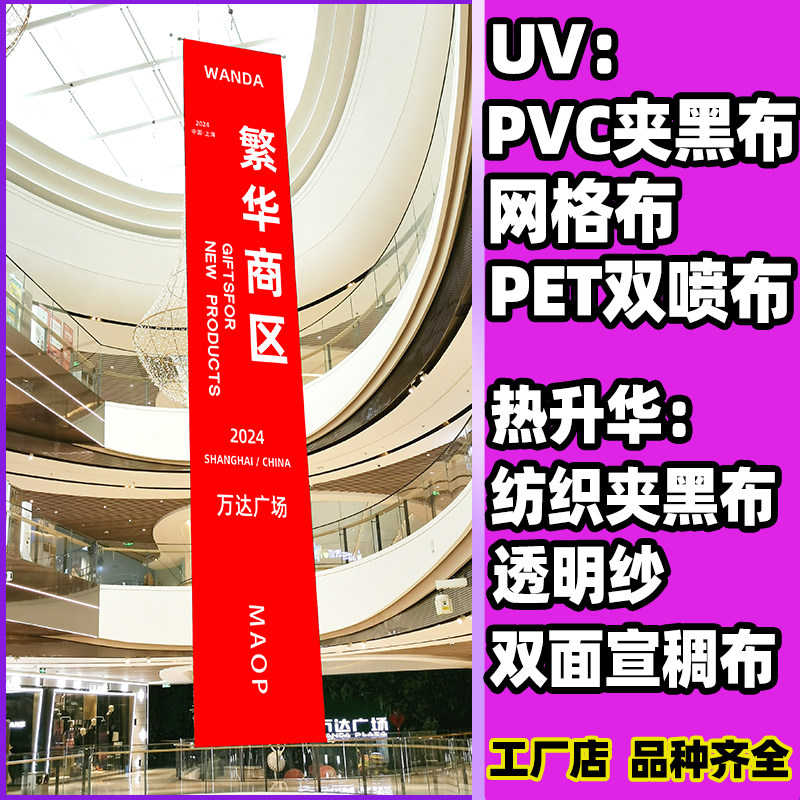 商场超市4S店房地产吊幔开业广告UV双喷布吊旗定制店庆双面夹黑布