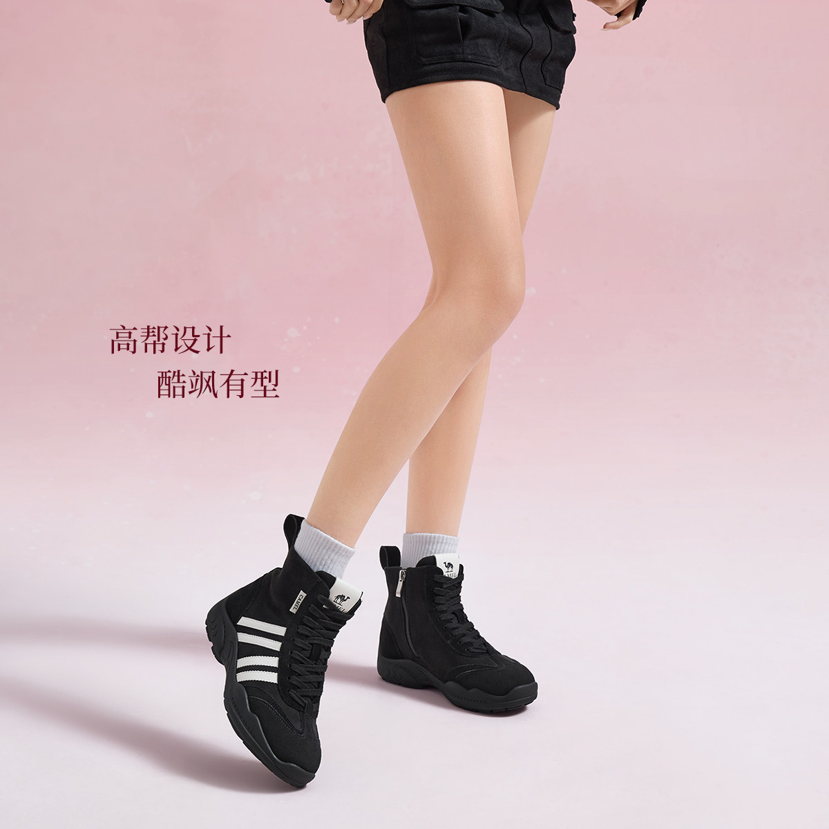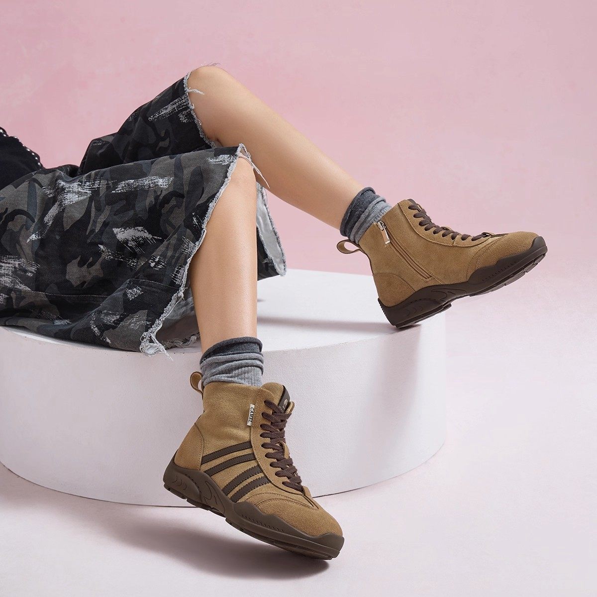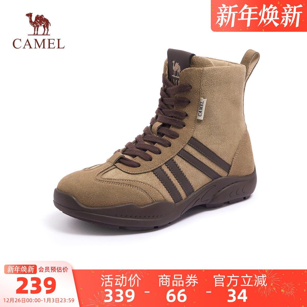 骆驼女鞋2025秋季新款运动鞋厚底增高休闲鞋女复古百搭高帮鞋女
