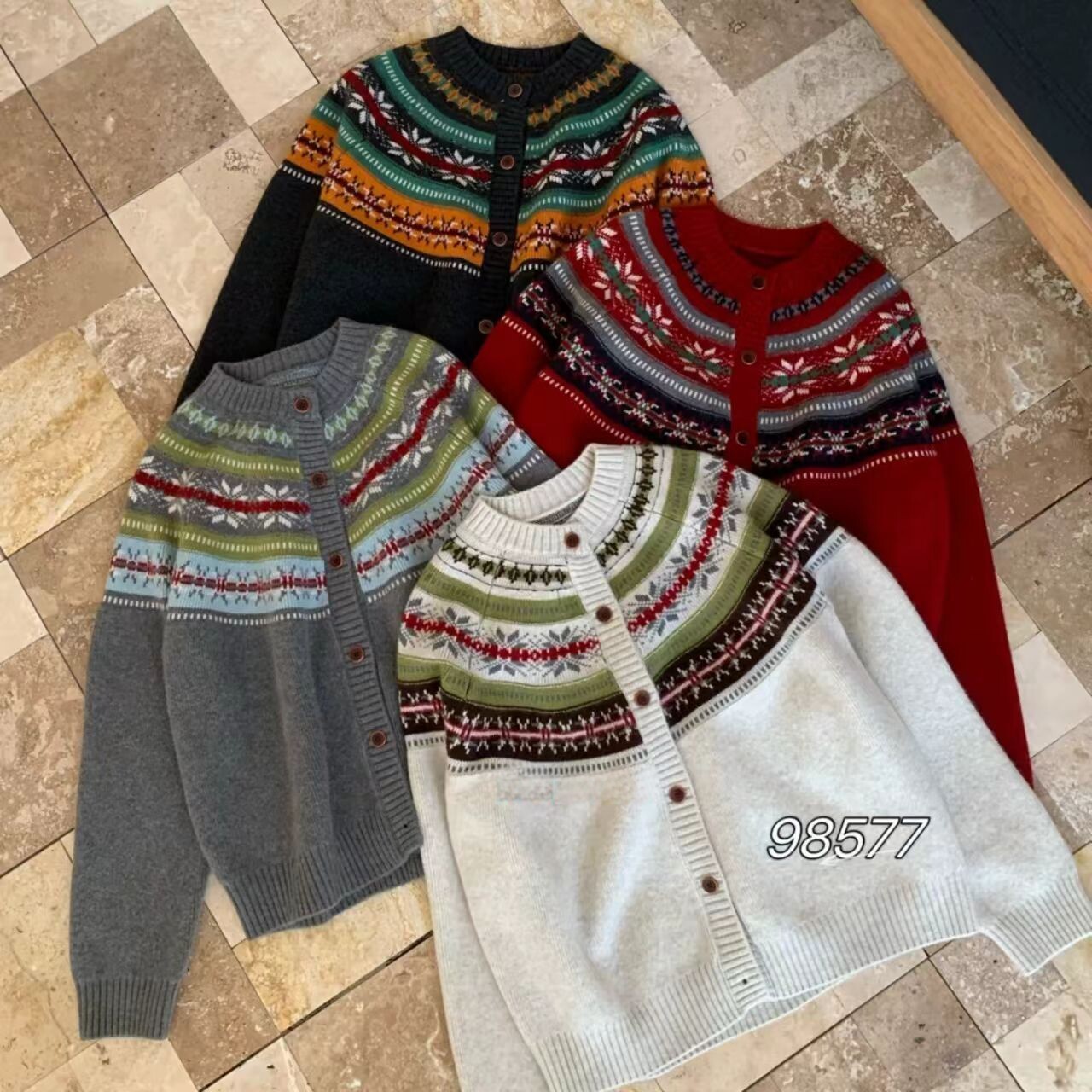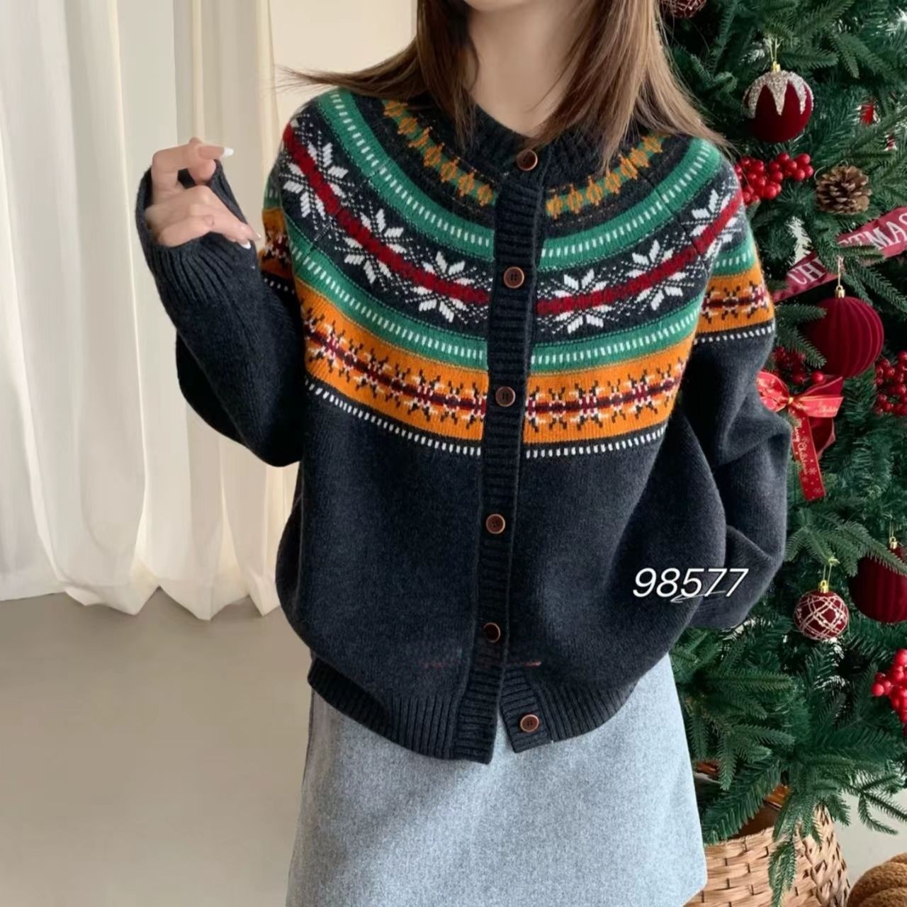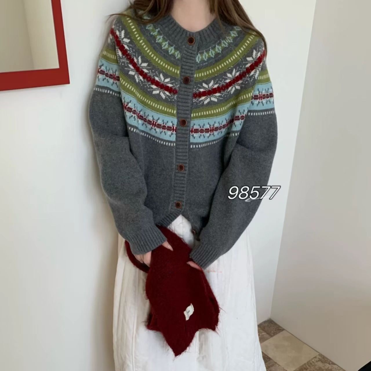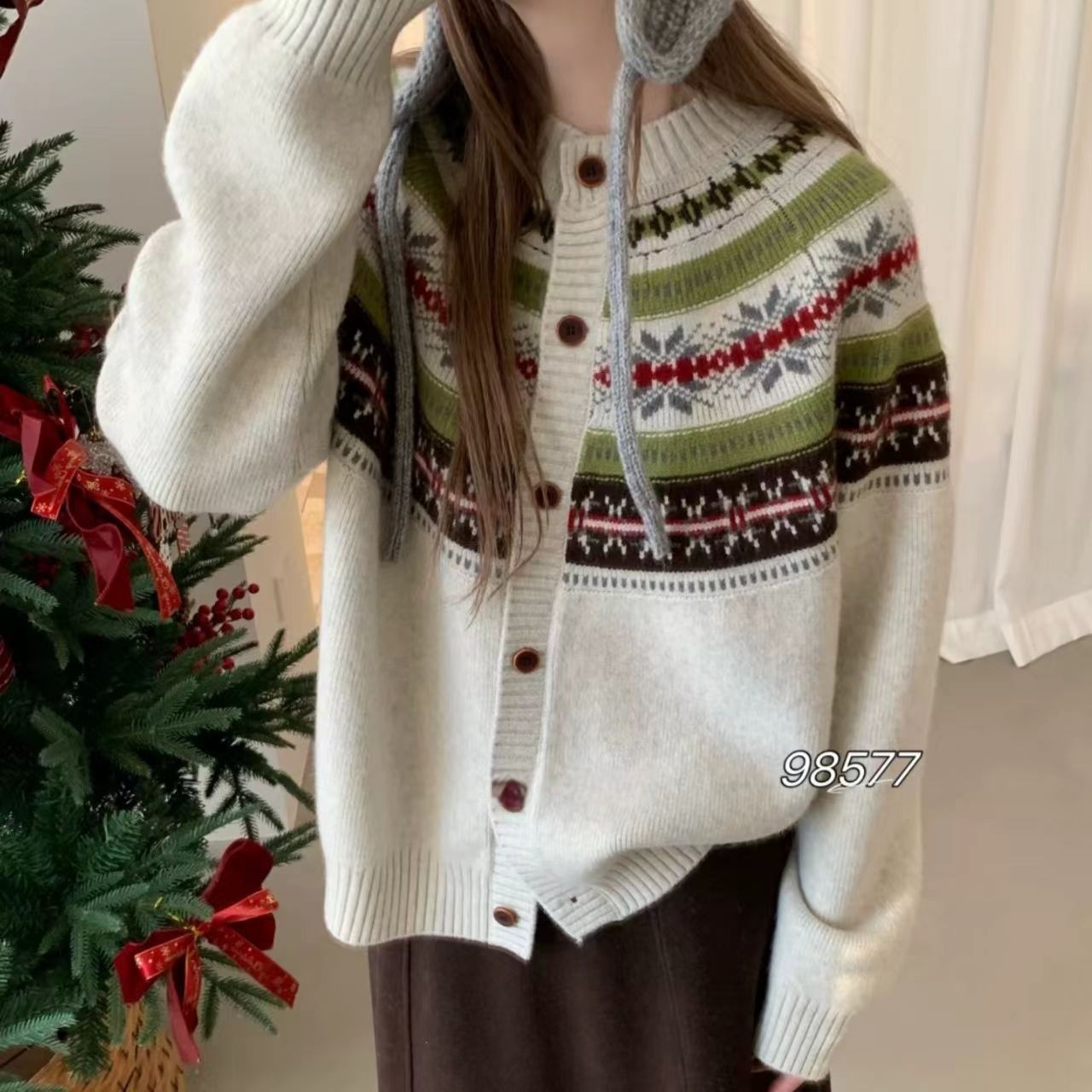 复古慵懒风费尔岛圣诞红色毛衣女秋冬2025减龄休闲针织衫毛衣上衣