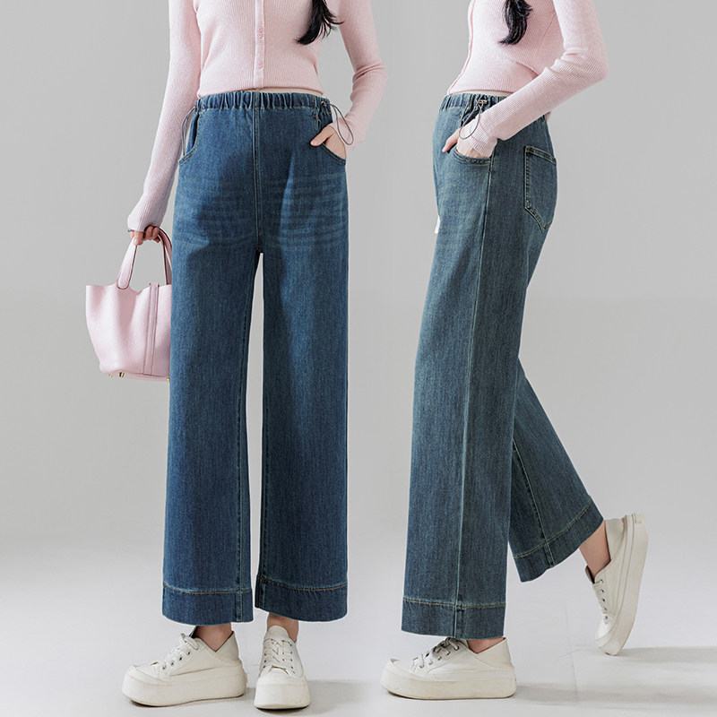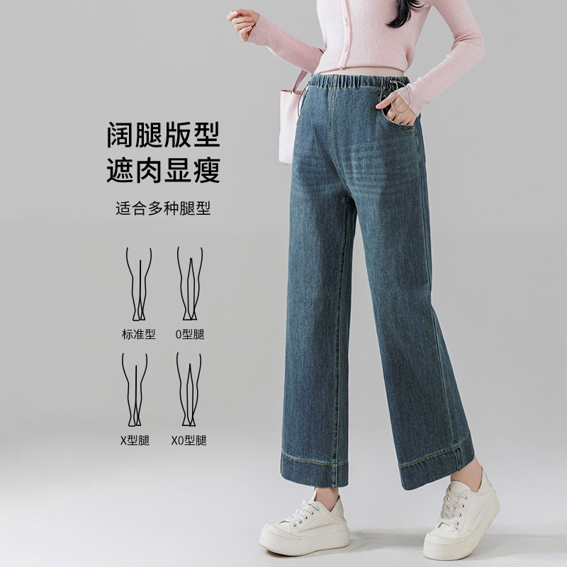 孕妇牛仔裤秋冬季加绒加厚外穿大码宽松高个子孕期不勒肚子阔腿裤