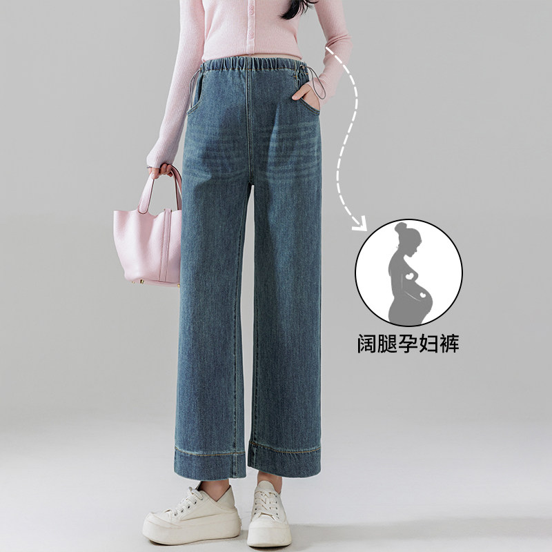 婧麒孕妇牛仔裤秋外穿不勒肚子无托腹裤2025新款九分直筒裤孕妇装