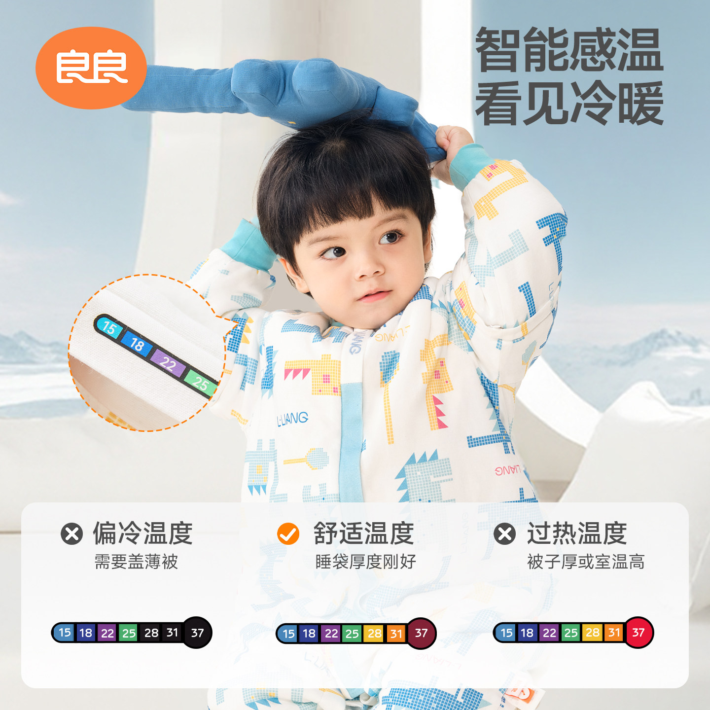 良良婴儿恒温睡袋儿童春秋款防踢被新生儿宝宝秋冬厚被子抗菌几何
