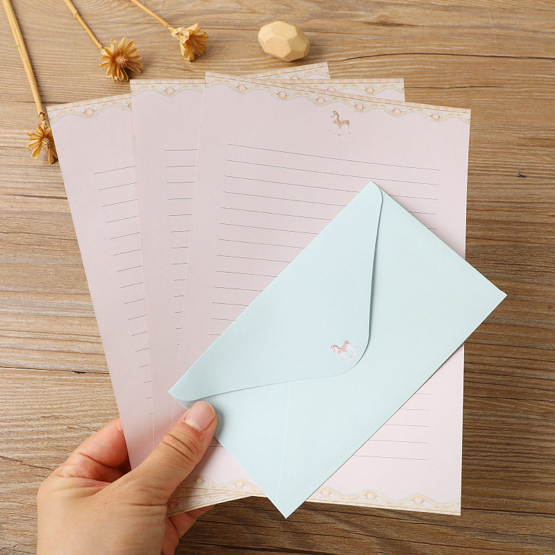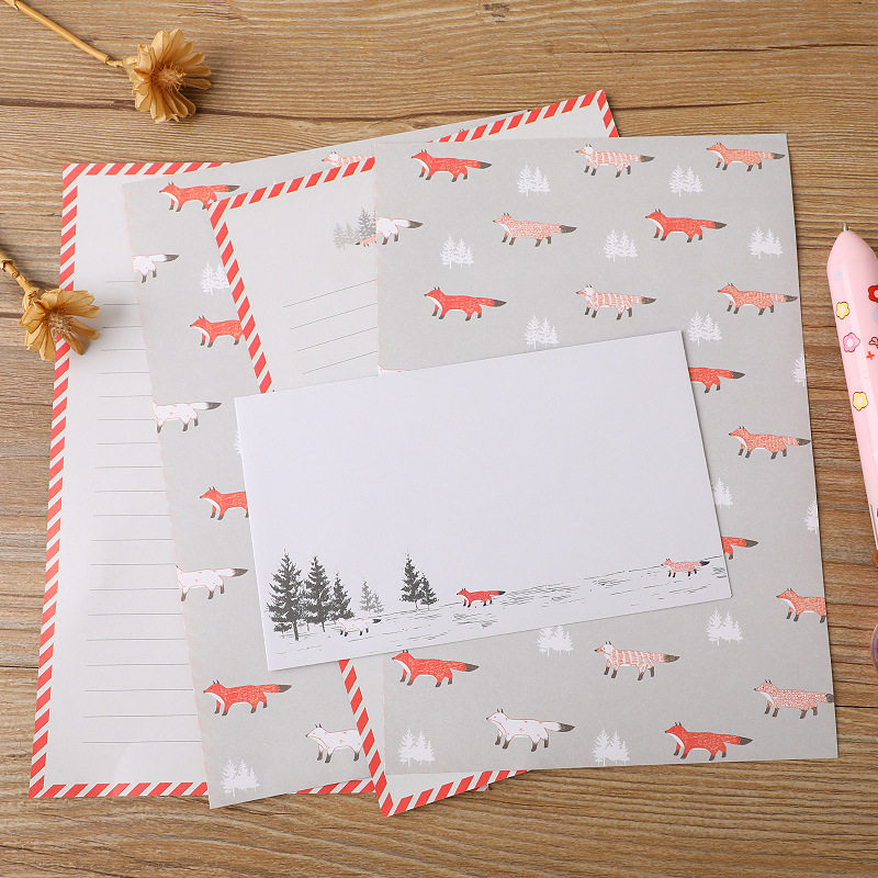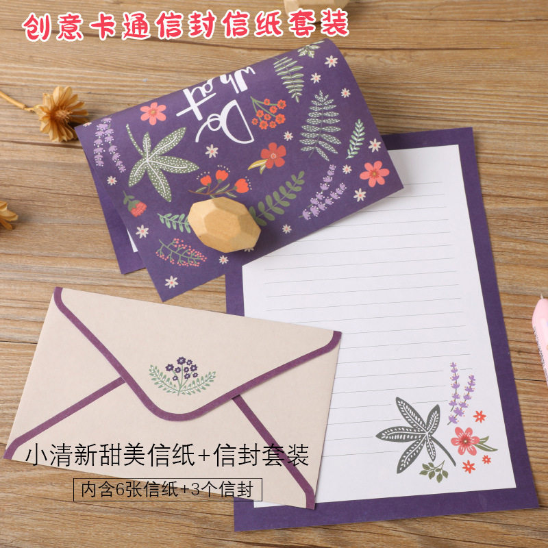 创意卡通信封信纸套装A5学生写信笺小清新可爱动物花园西式小信封