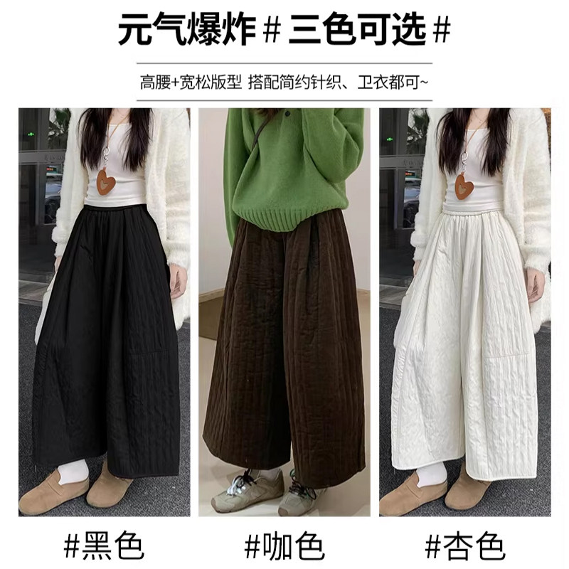 夹棉加绒棉裤女冬2025新款高腰气球裤宽松小个子九分阔腿裙裤外穿