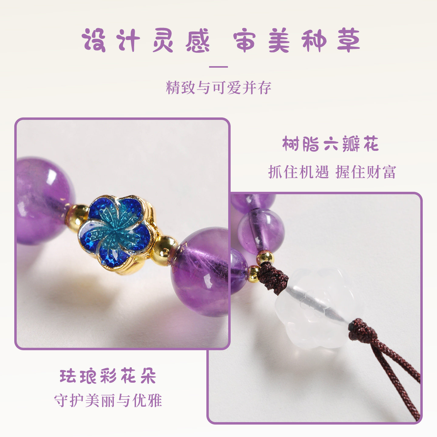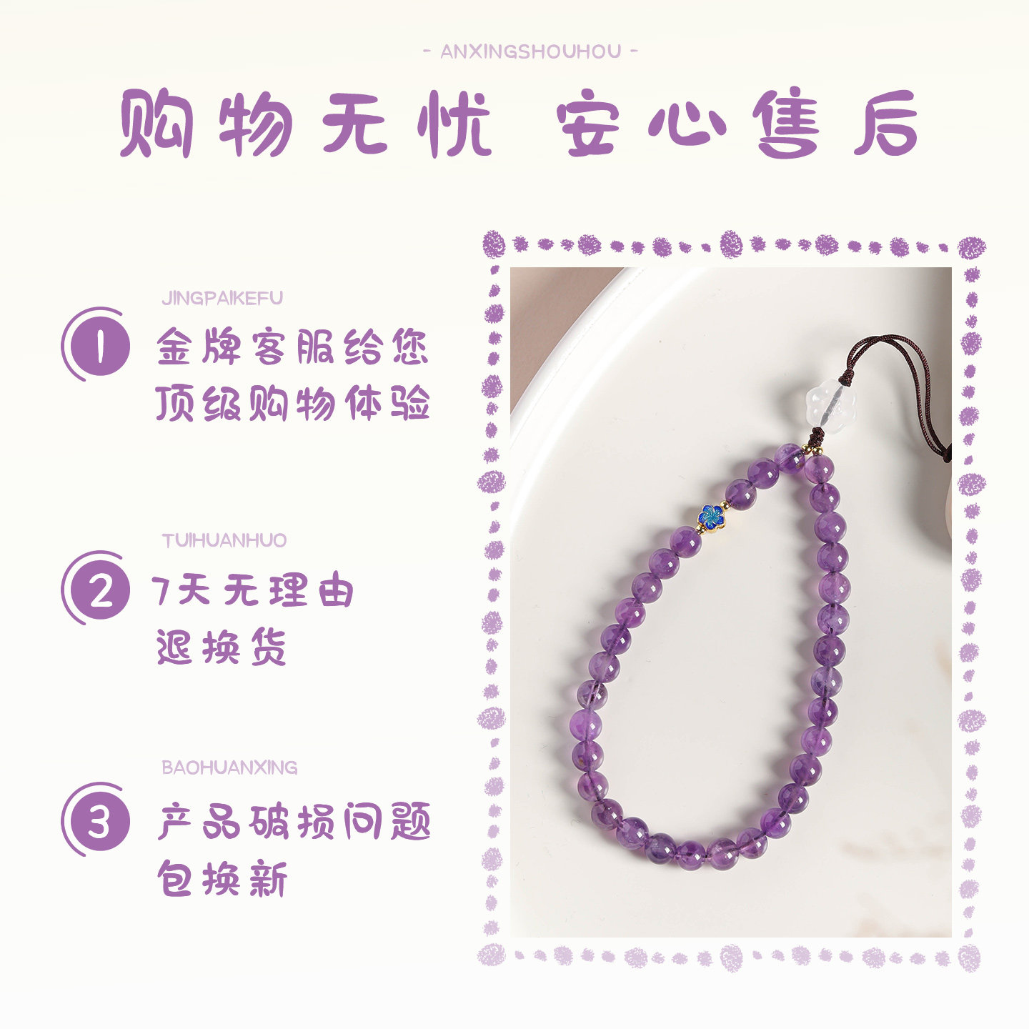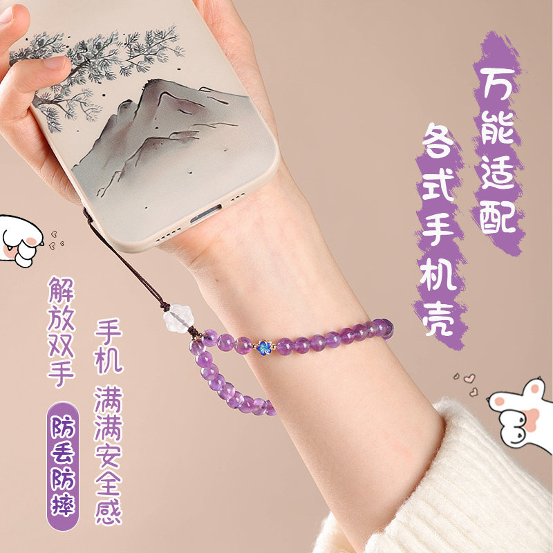 天然紫水晶圆珠手机链女款配饰ins风高级感挂绳防丢链送女友礼物