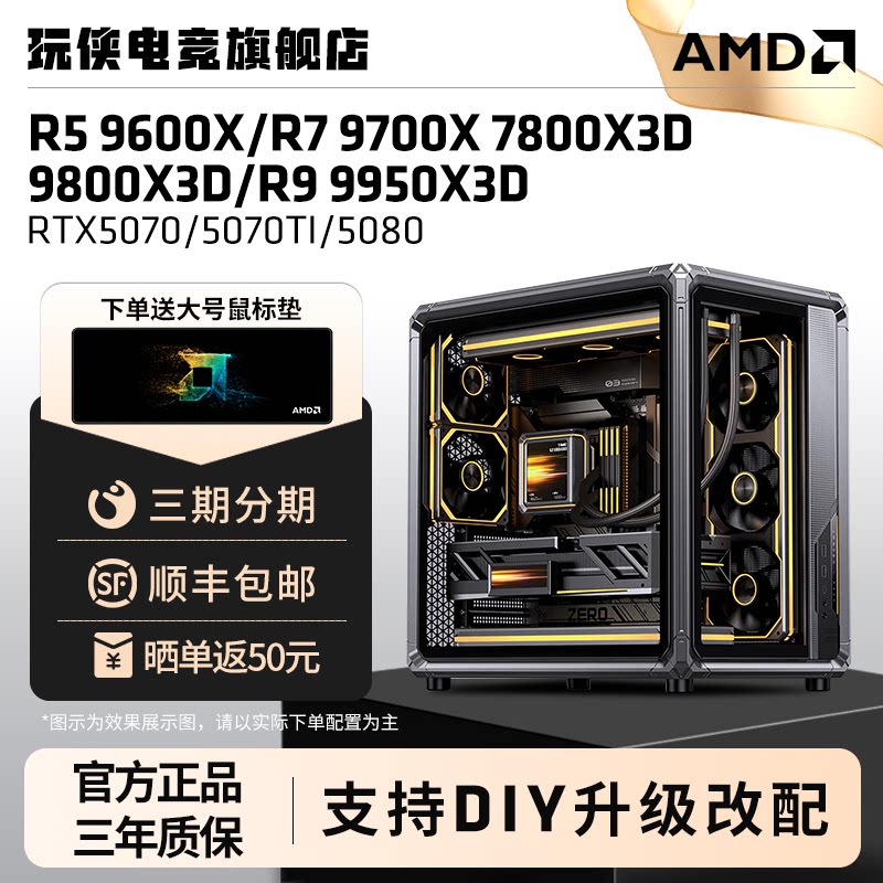 AMD锐龙 9800X3D/9850X3D/9950X3D/5070TI/5080乔思伯X400台式电脑主机直播电竞游戏设计电脑主机DIY组装机
