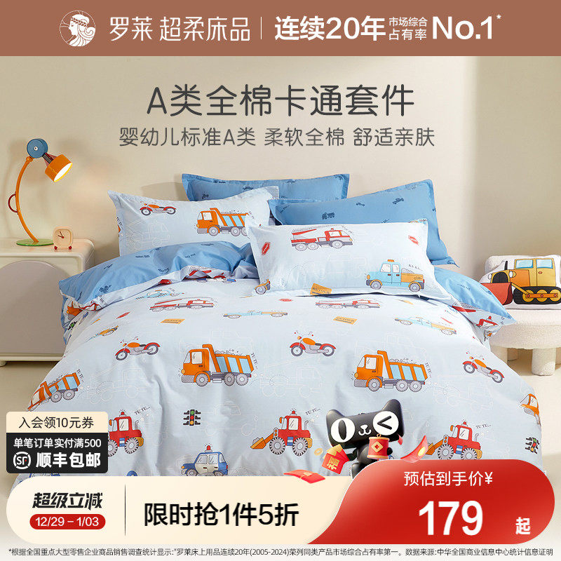 罗莱家纺儿童四件套纯棉男孩被套被罩全棉床单三件套床品学生宿舍
