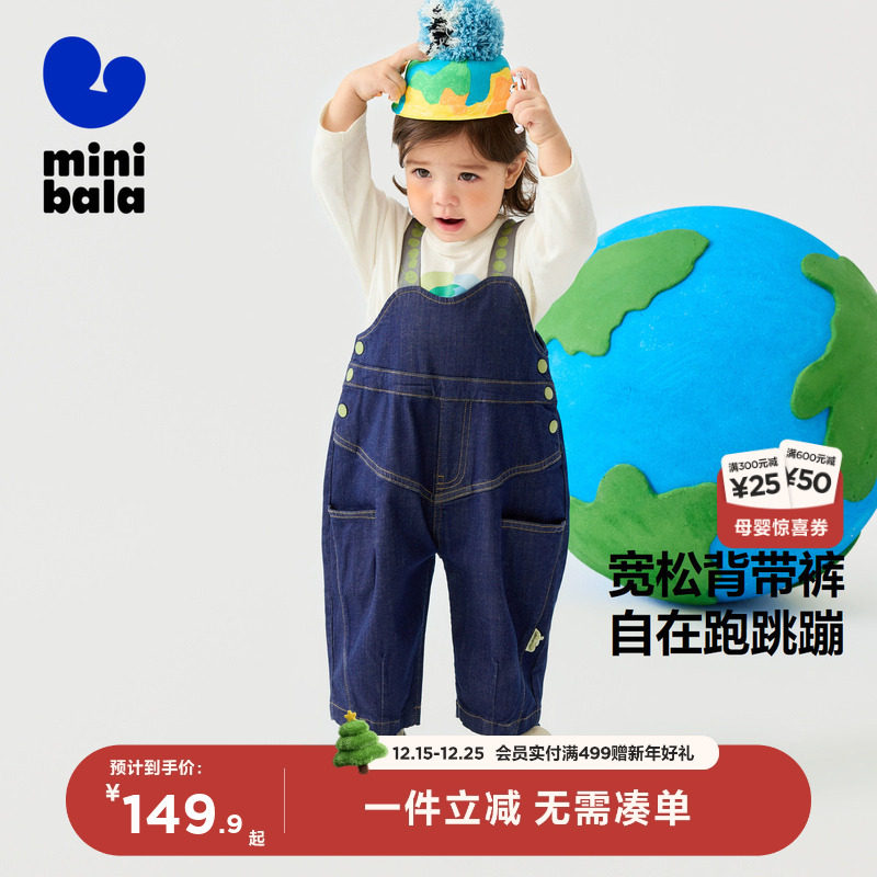 迷你巴拉巴拉男女童裤子秋新品宝宝背带裤萌趣可爱婴儿牛仔裤