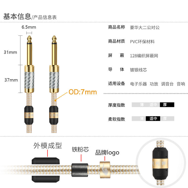 戈利狮电吉他线6.5mm公对公音频线 电吹管电子琴调音台音箱专用线