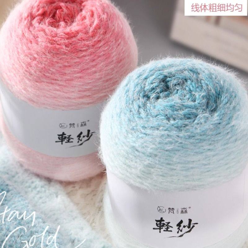轻纱七星毯渐变长绒线手工编织钩织帽子围巾手编diy披肩材料芝士