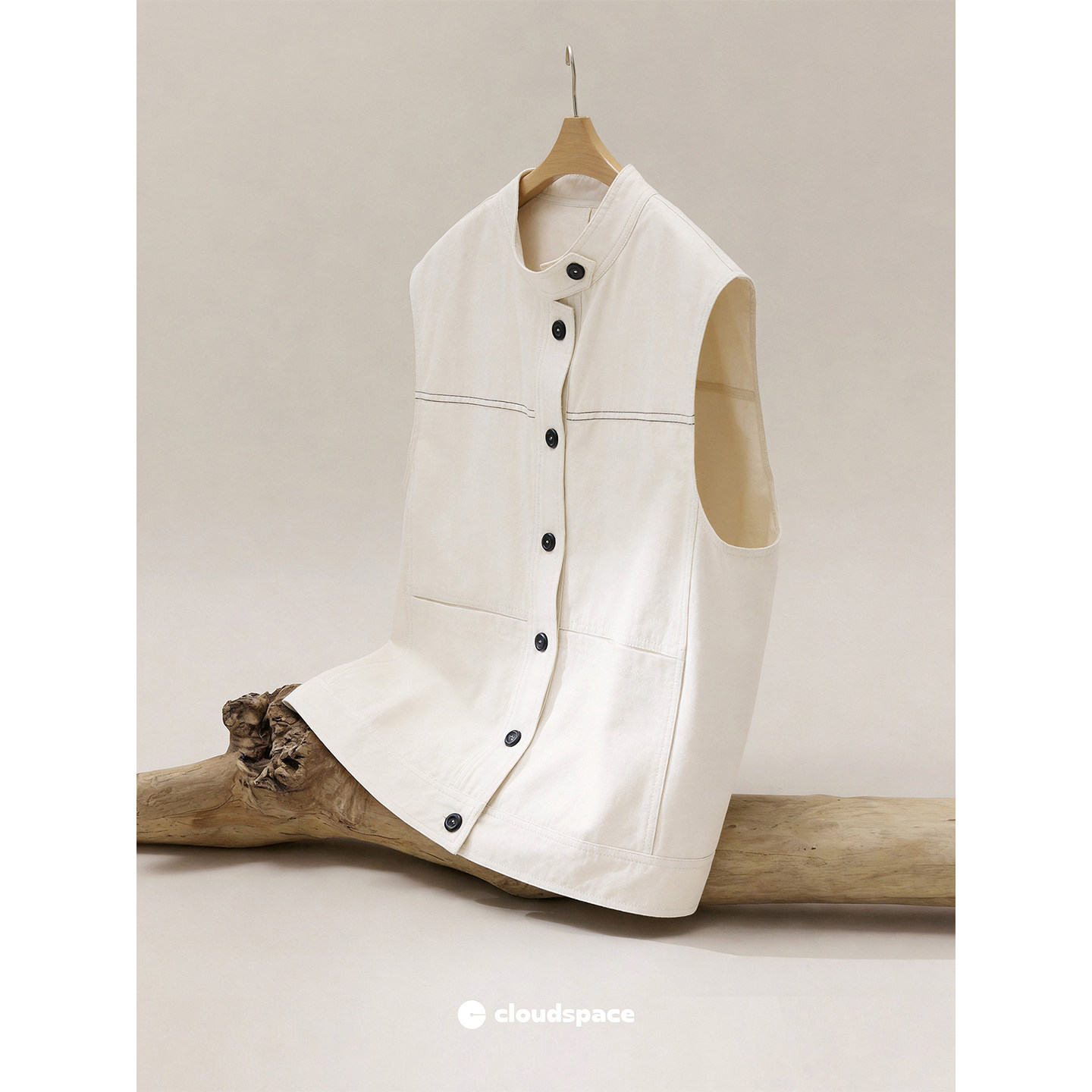 CLOUDSPACE【简约老钱】老钱风100%棉立领开衫马甲外套女2026春季