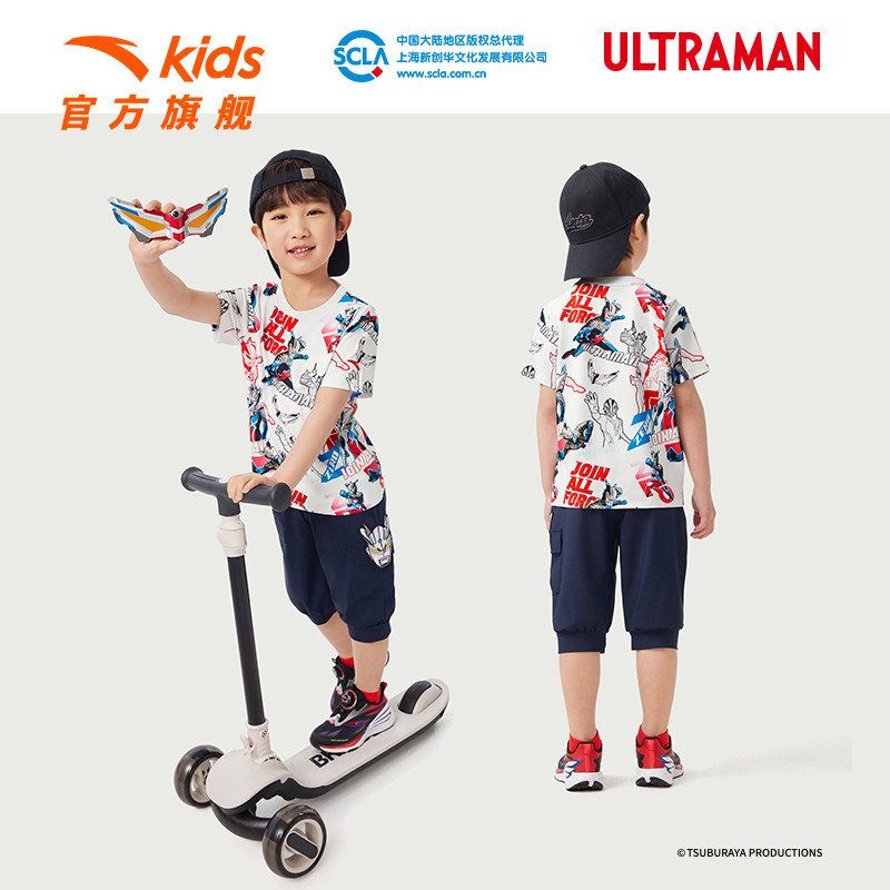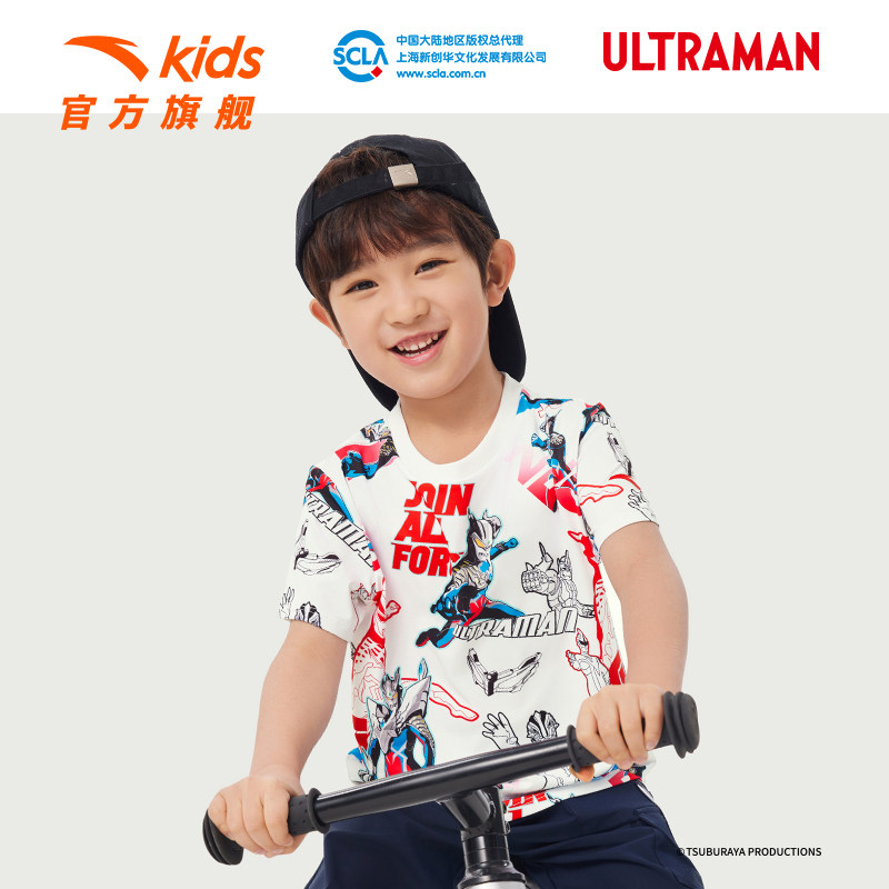 奥特曼安踏儿童男小童针织短袖衫2026夏新款透气舒适儿童圆领短袖