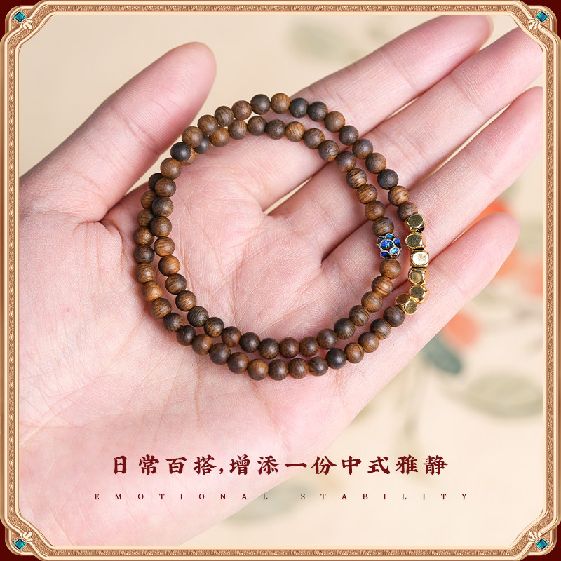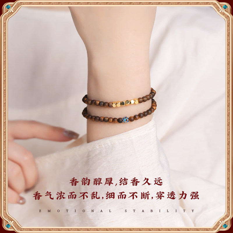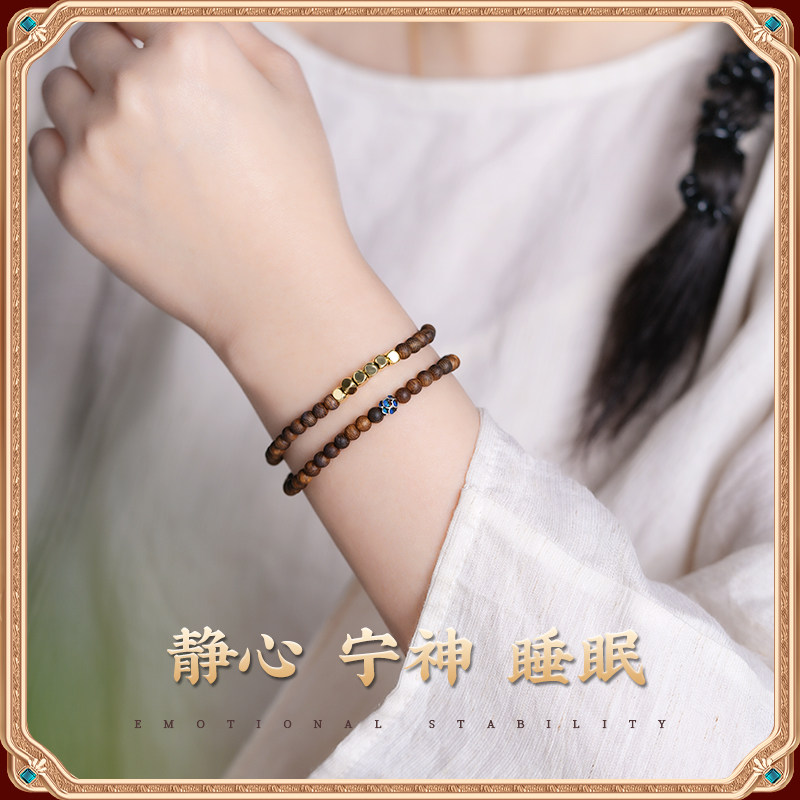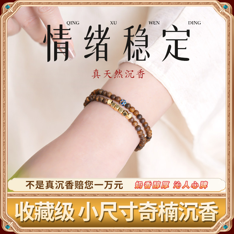 天然奇楠沉香手串女士木质手链佛珠文玩小尺寸沉水级双圈蜜蜡安神