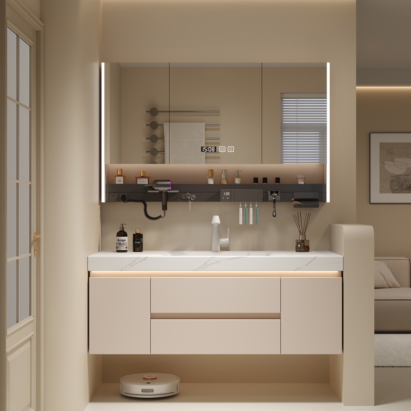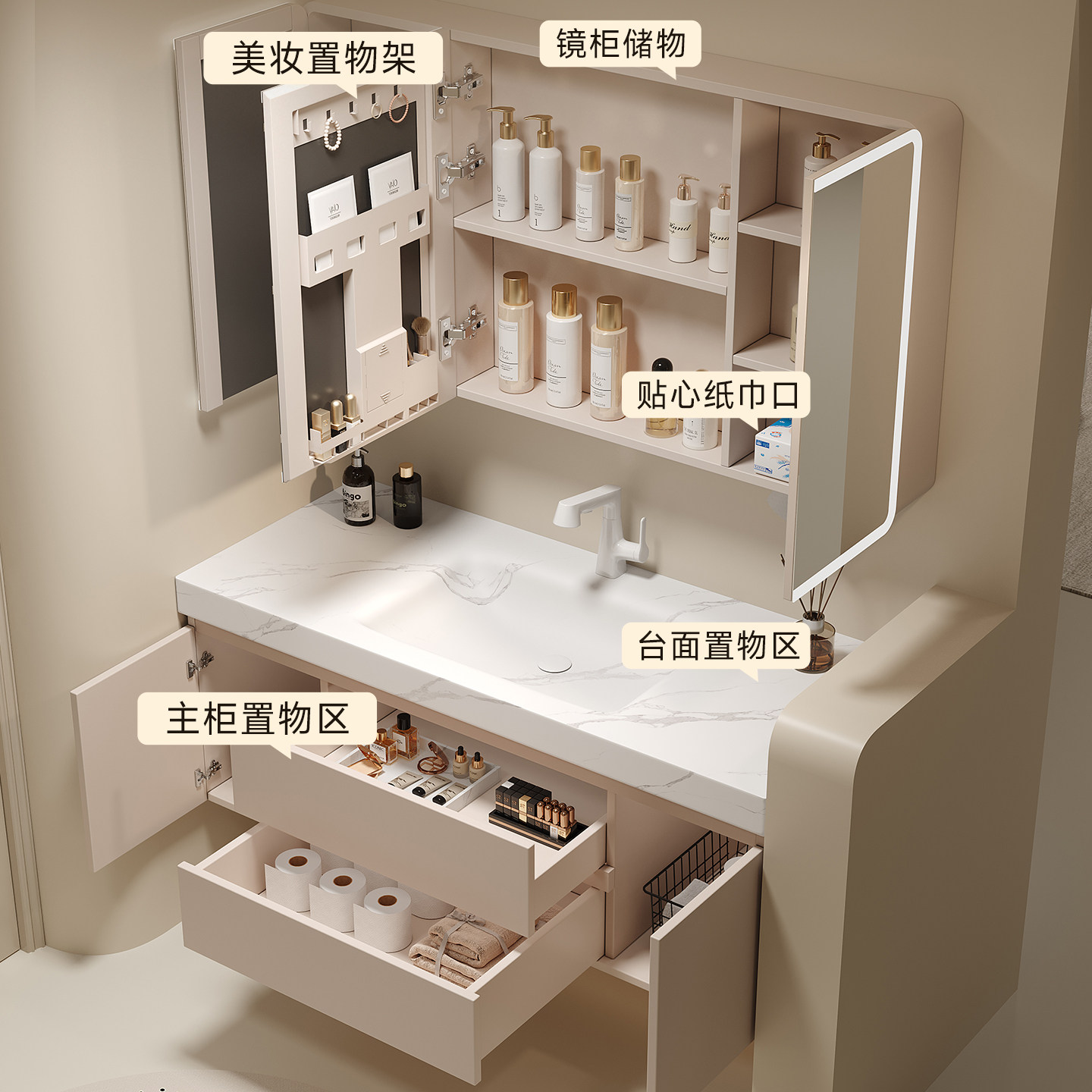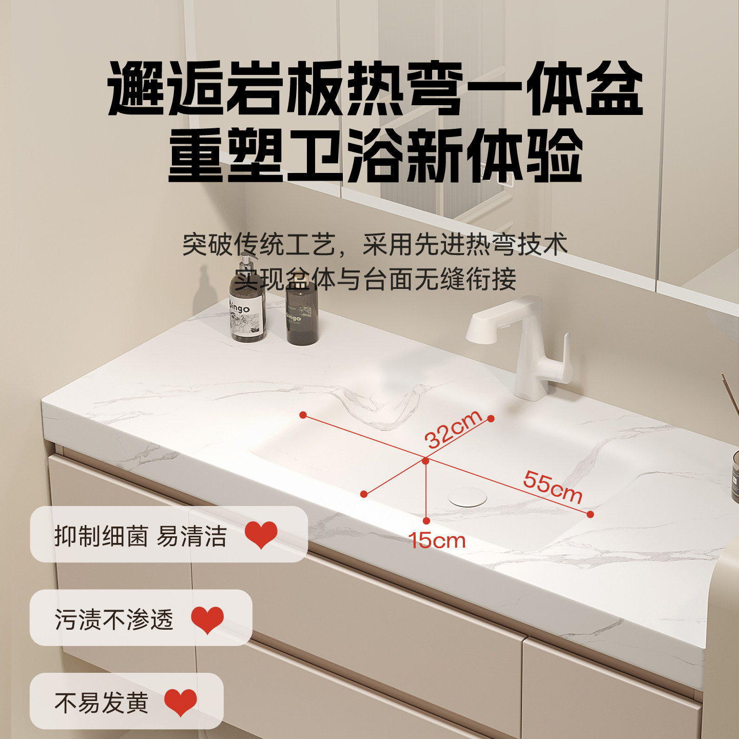 2026新款卫生间浴室柜岩板无缝陶瓷一体式手脸池盆洗漱台组合定制