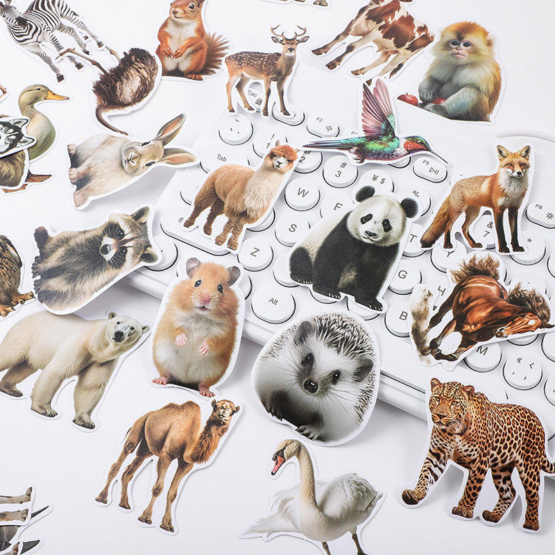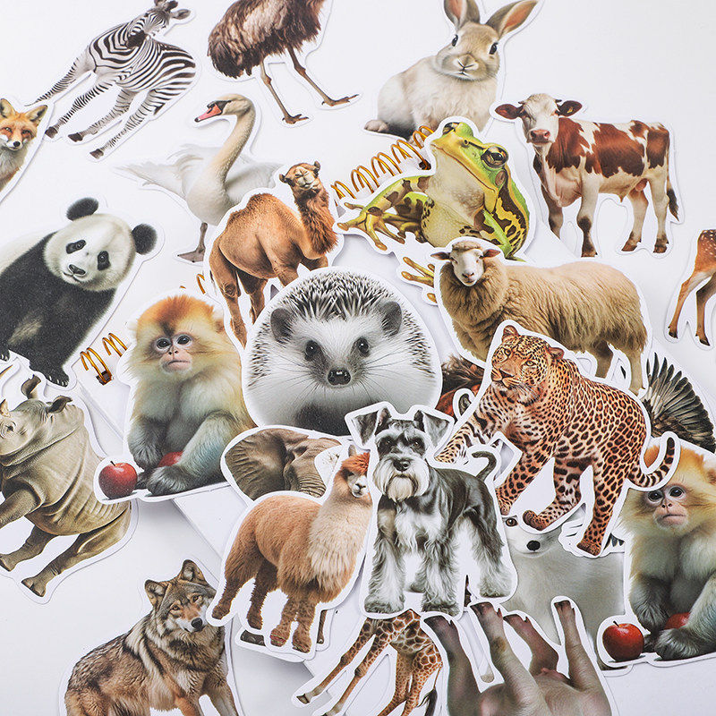 100张动物写真手机手账贴纸电脑装饰儿童幼儿园奖励益智识物贴画