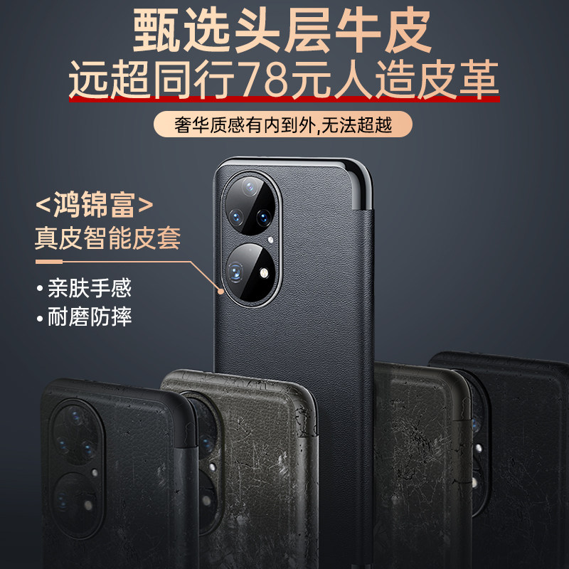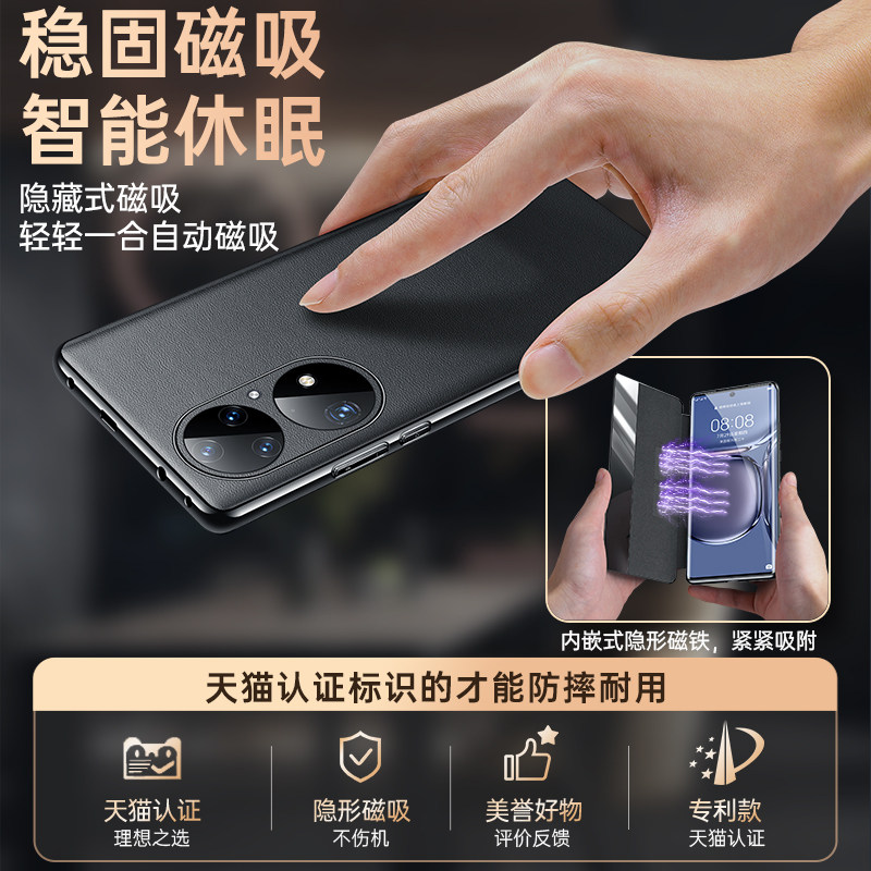 【新款升级】适用华为P50pro手机壳新款真皮磁吸翻盖P50智能视窗p50e限量版高档商务男士保护套por全包防摔
