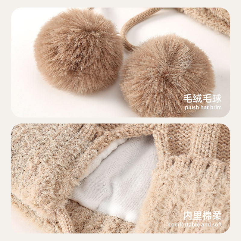围巾帽子手套一体女连帽冬季帽可爱保暖围脖毛绒冬天三件套厚防寒