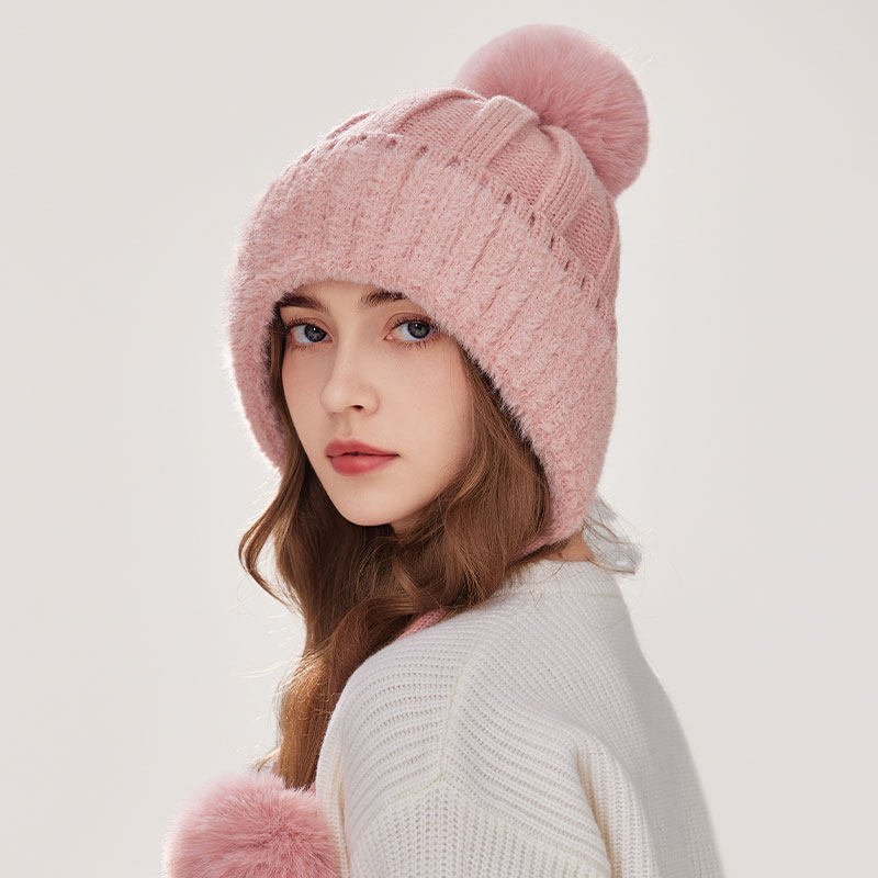 稻草人毛线帽子女冬季加厚渔夫帽保暖护耳针织毛绒盆帽加绒雷锋帽