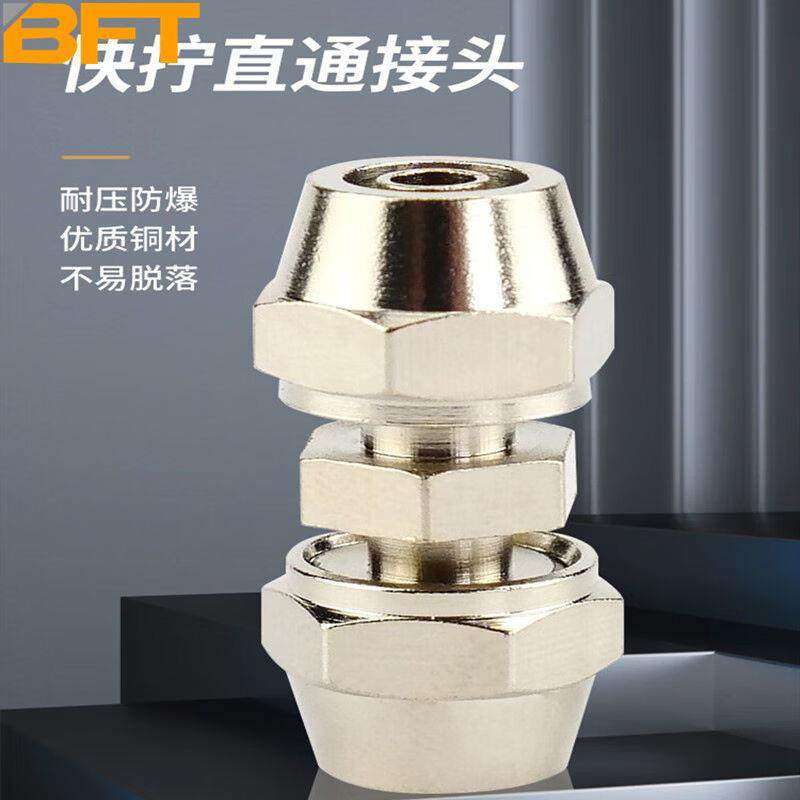 贝傅特气动气管快插元件快拧直通接头锁母型PU-4