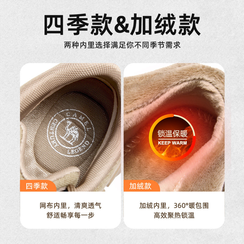 骆驼男鞋马丁靴男工装增高厚底中帮户外登山加绒加厚保暖男士秋冬