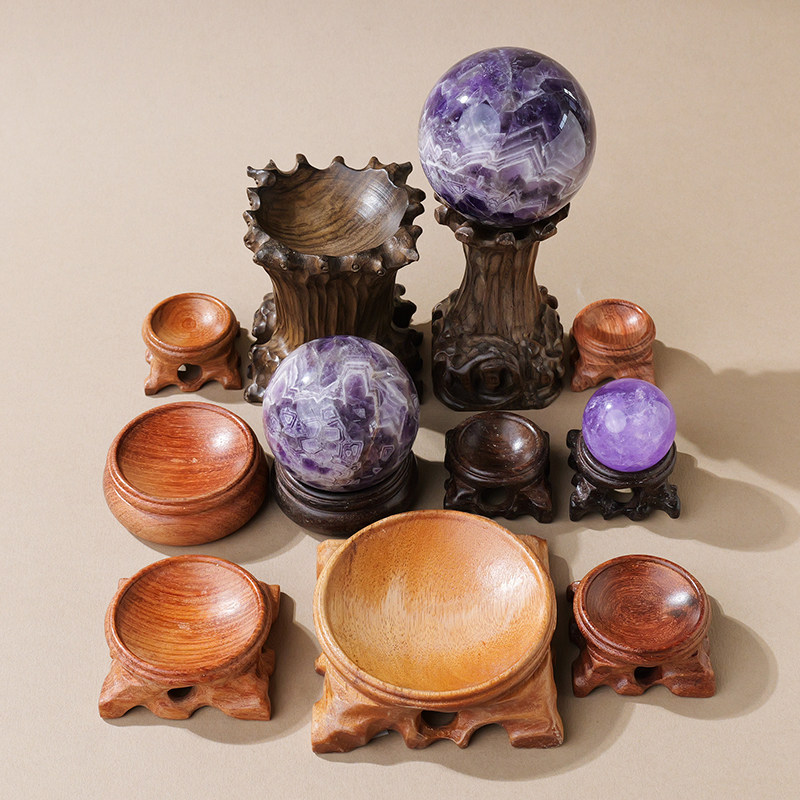 木质水晶球底座创意原木球托实木架工艺品标本展示架装饰摆件镂空