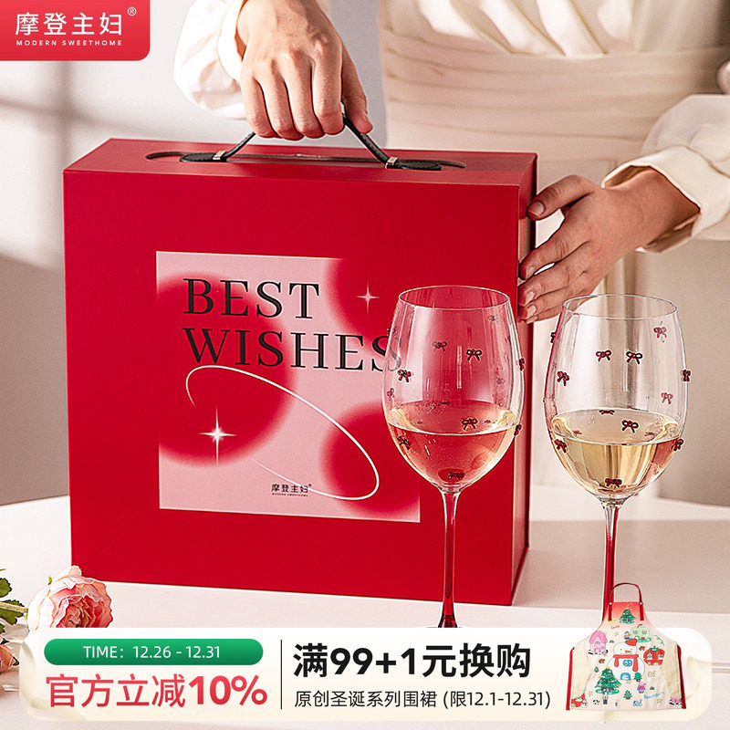 摩登主妇蝴蝶结高脚杯婚礼敬酒杯一对新婚结婚礼物香槟杯红酒杯子