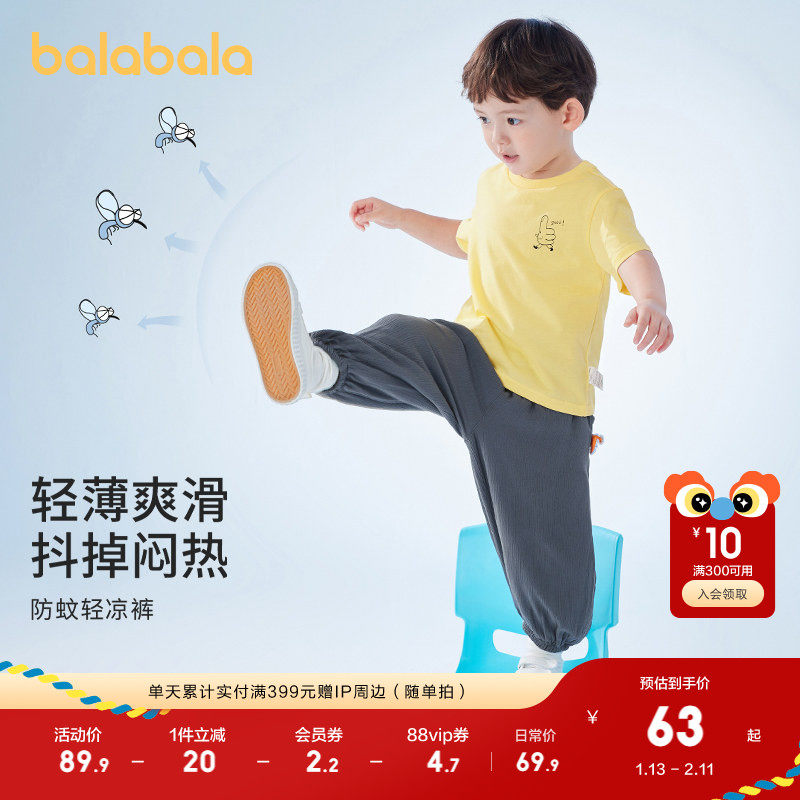 巴拉巴拉儿童裤子男童防蚊裤夏装新款童装宝宝薄款长裤女童休闲裤
