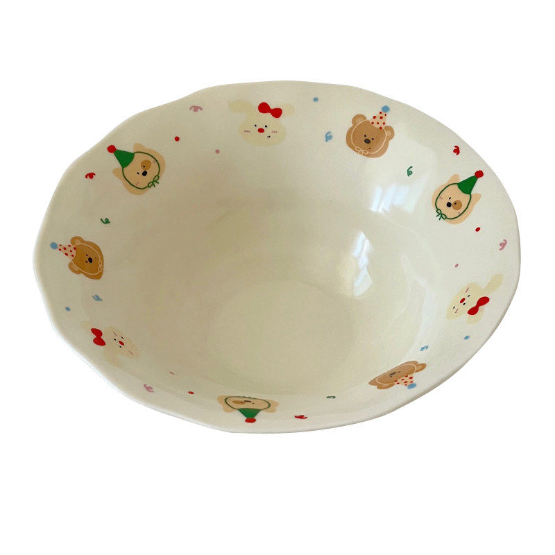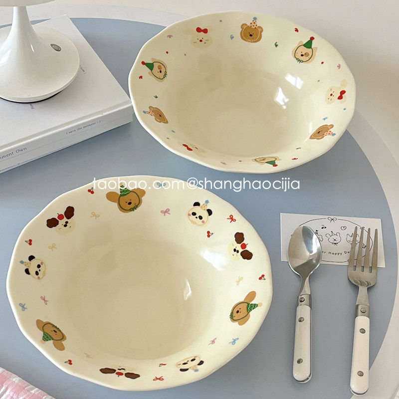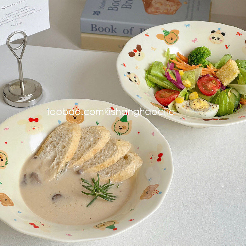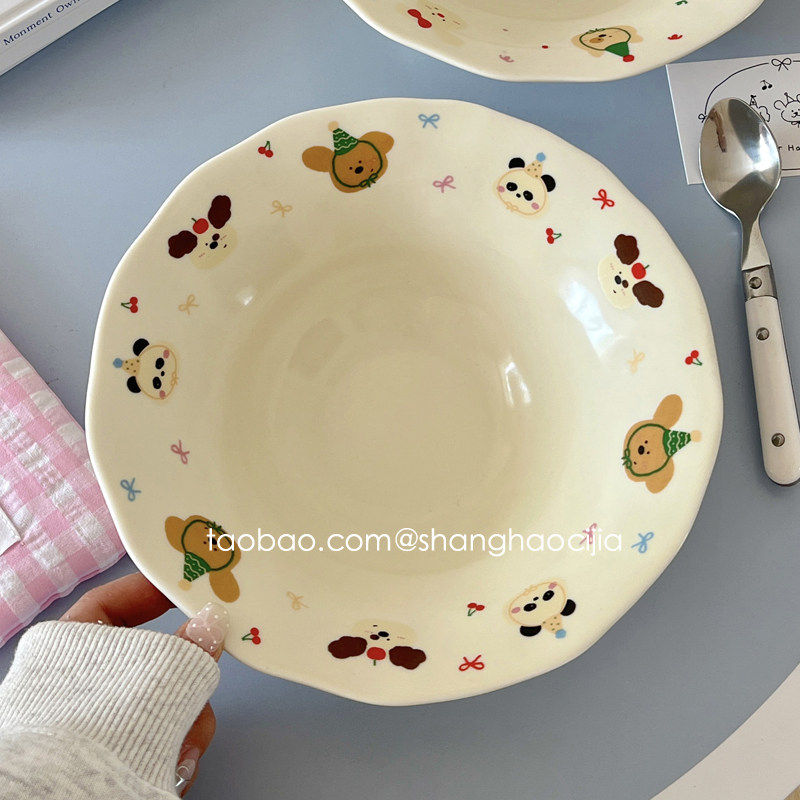 ins韩国可爱小狗草帽盘家用陶瓷意面西餐盘深盘甜品蛋糕盘菜碟子