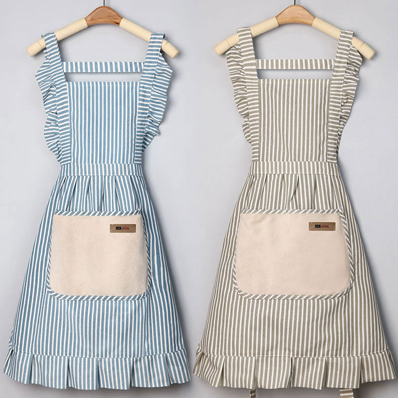 围裙女家用厨房餐饮专用工作服2025新款网红棉麻围腰时尚背带红色