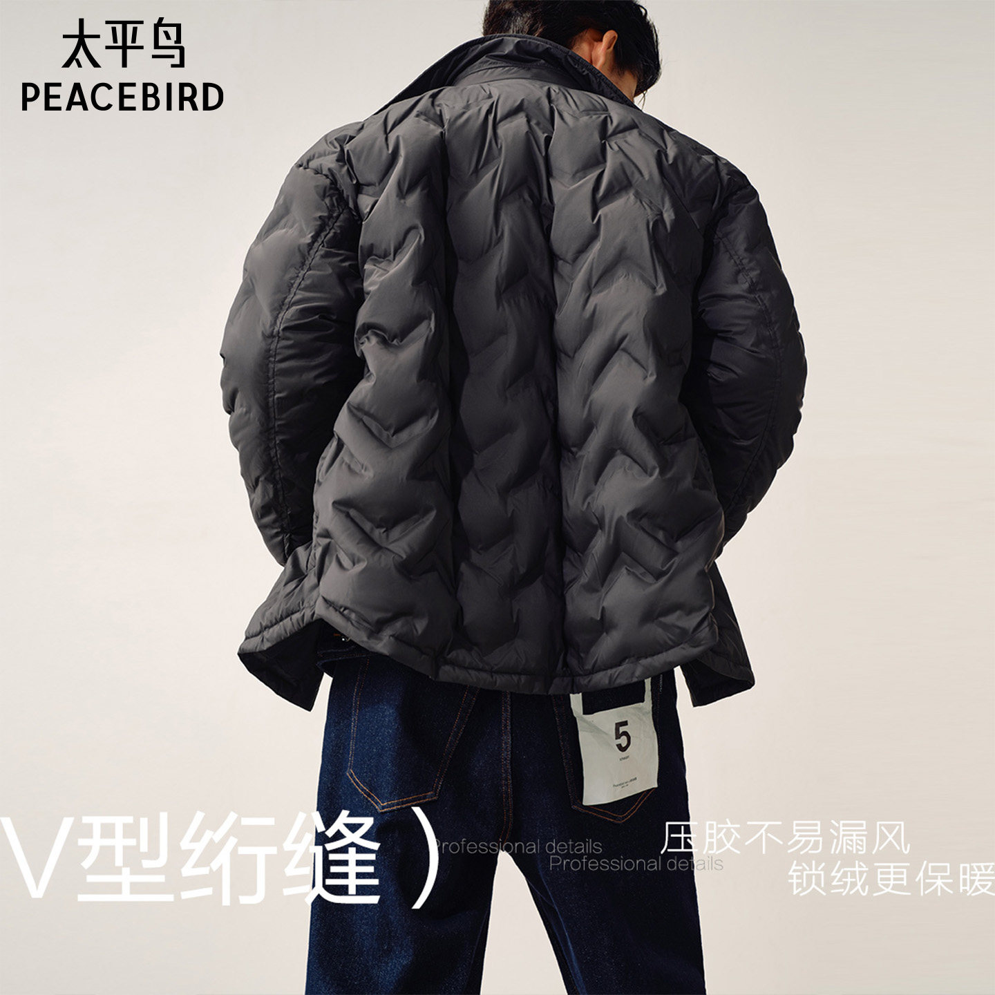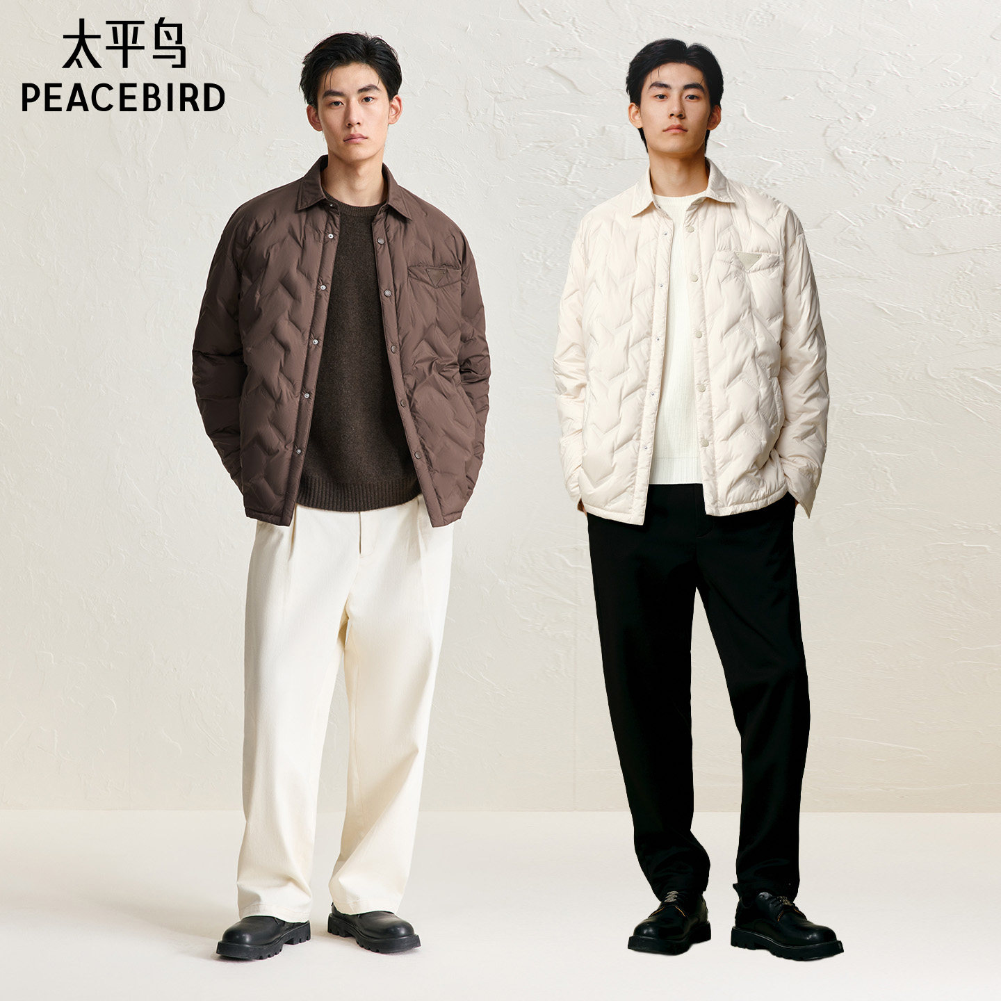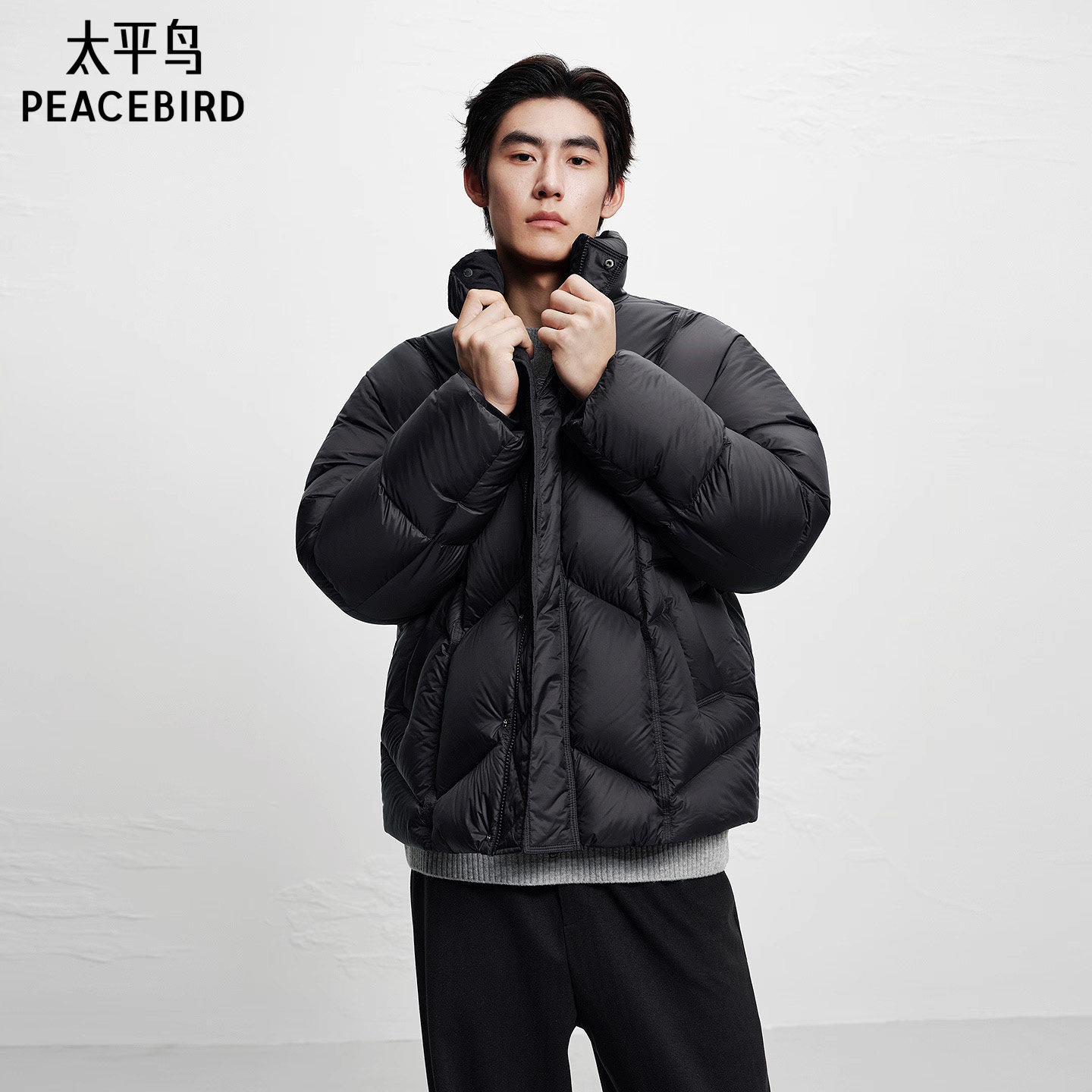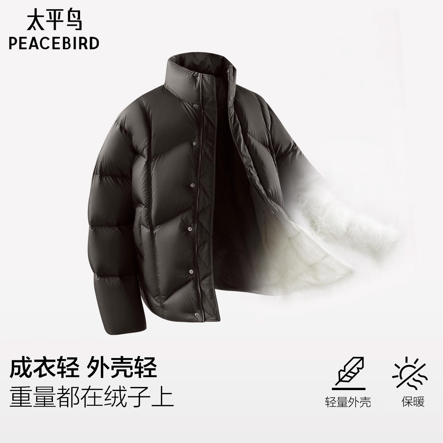 太平鸟男装 冬季通勤衬衫式/压胶轻蓬羽绒服男防寒服休闲