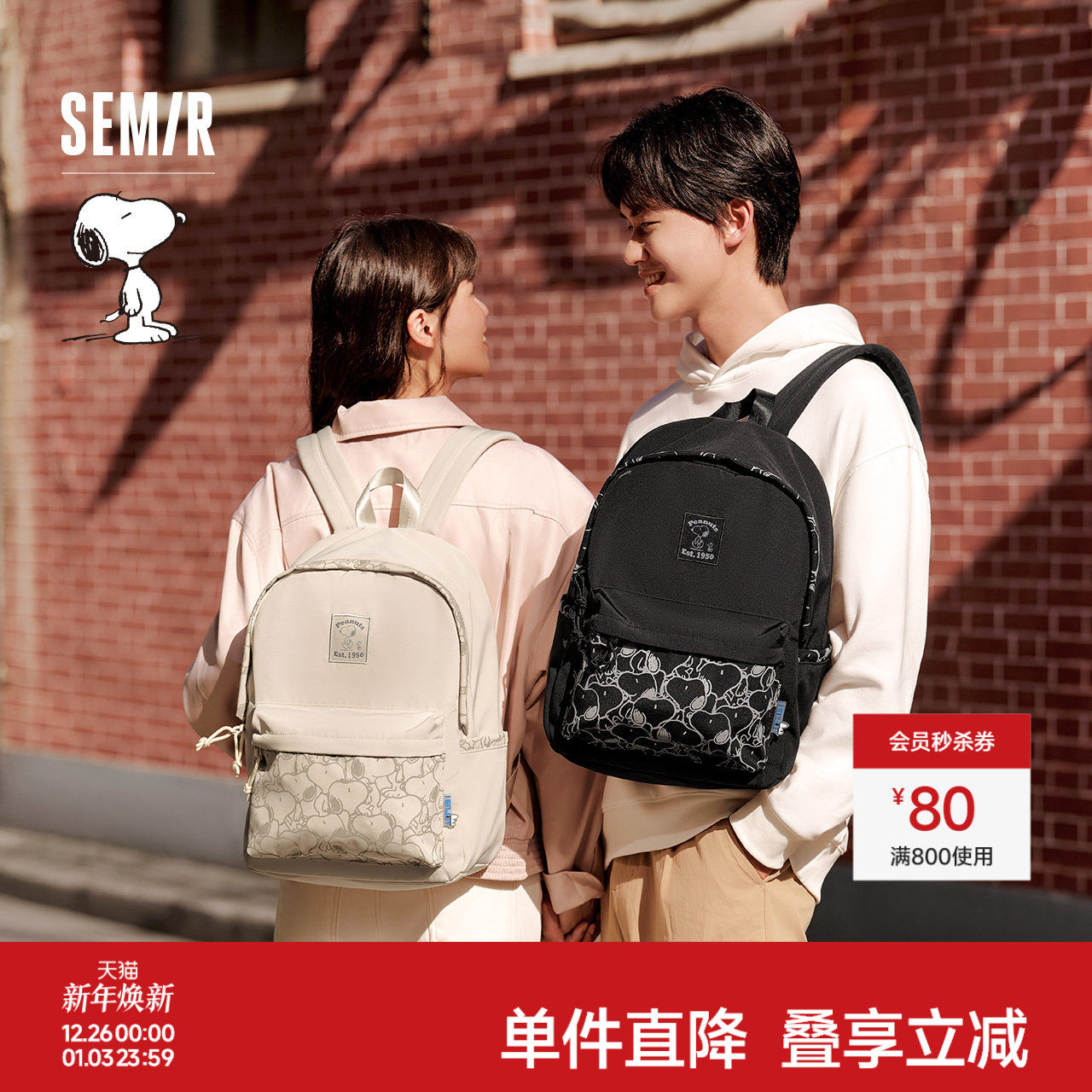森马双肩包男史努比系列卡通印花情侣户外背包大容量通勤电脑包女